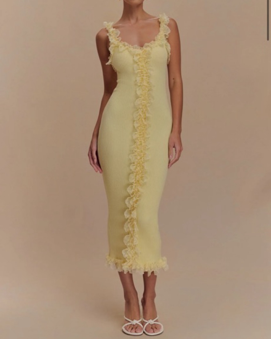 Meshki Shay Yellow Lace Ruffle Dress by Meshki - Pickle