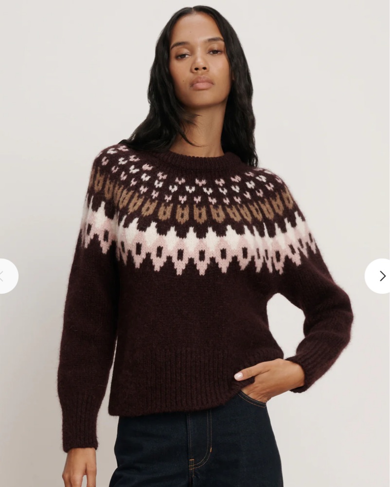 This cozy and stylish Veronica Beard Anne Fair Isle sweater is perfect for a casual winter day or cozy evening at home. The intricate jacquard pattern and soft, warm knit make it a versatile and comfortable piece. Tags: Veronica Beard, Fair Isle, Sweater.