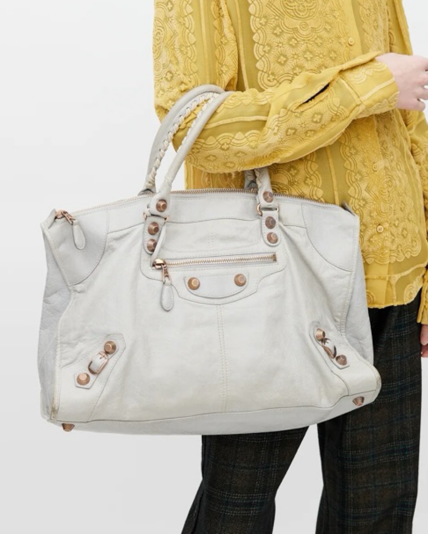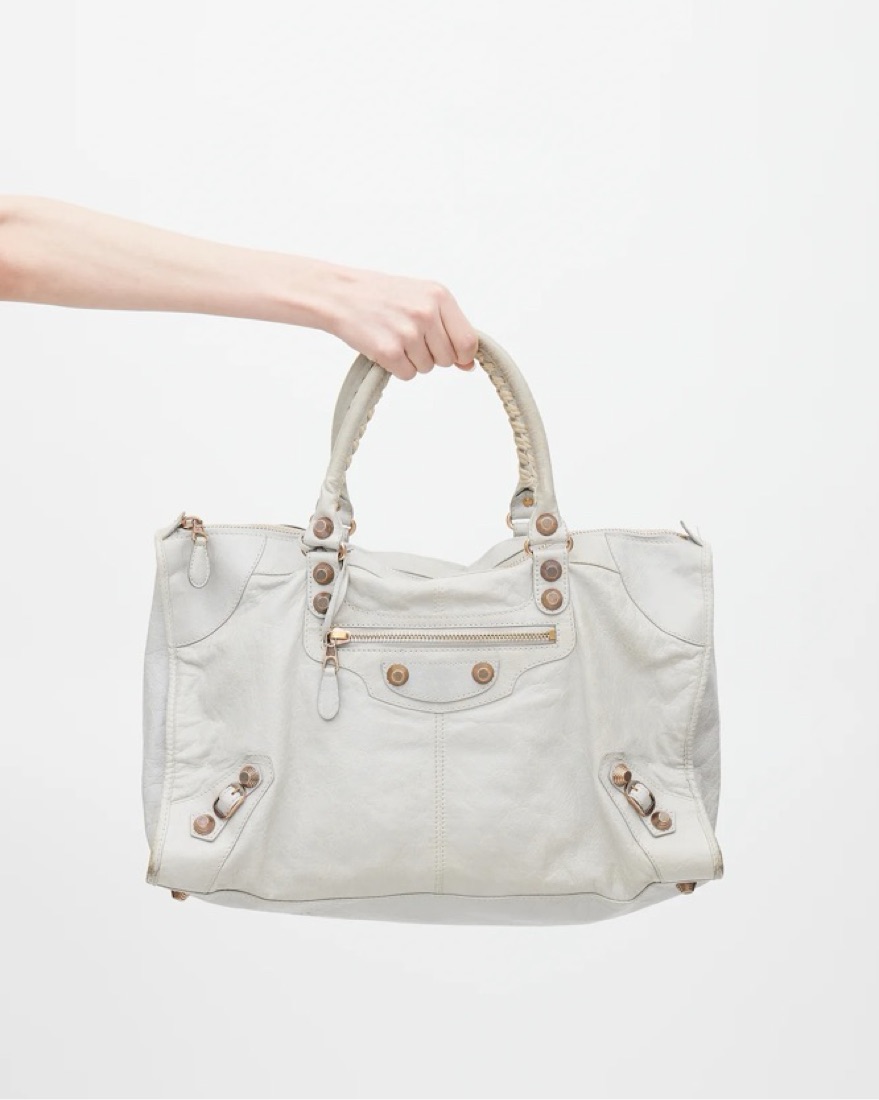 Grey And Gold Balenciaga City Bag by Balenciaga - Pickle