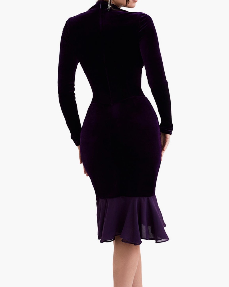 This luxurious velvet dress is perfect for a night out or a formal event. The ruffle hem adds a touch of drama and sophistication.