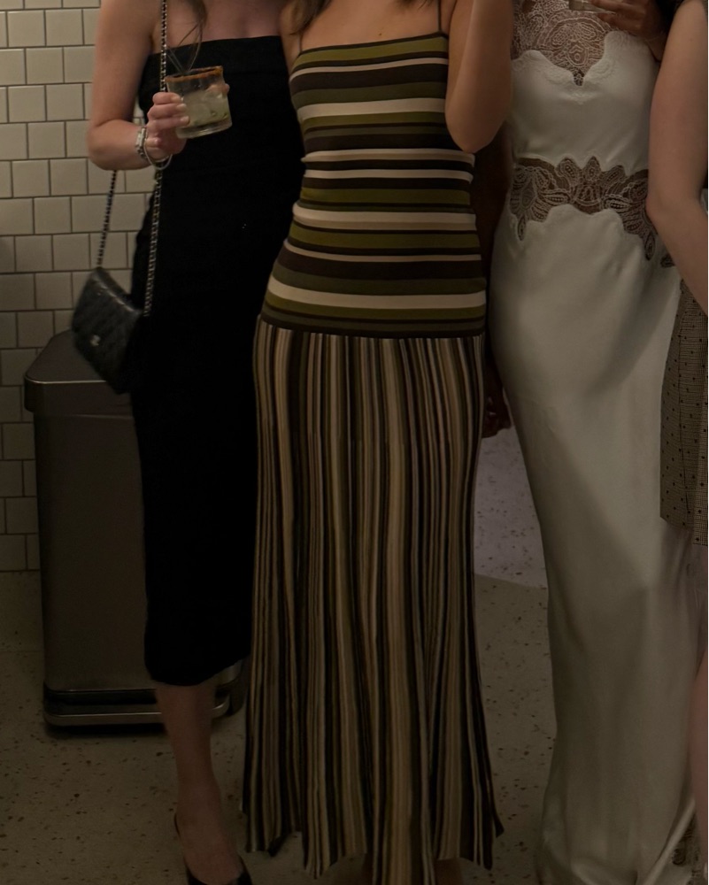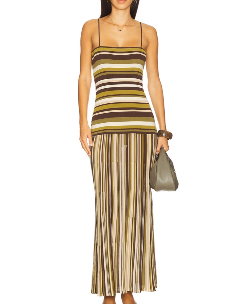 Faithfull the Brand Essenia Knit Dress is espresso pine stripe size S.