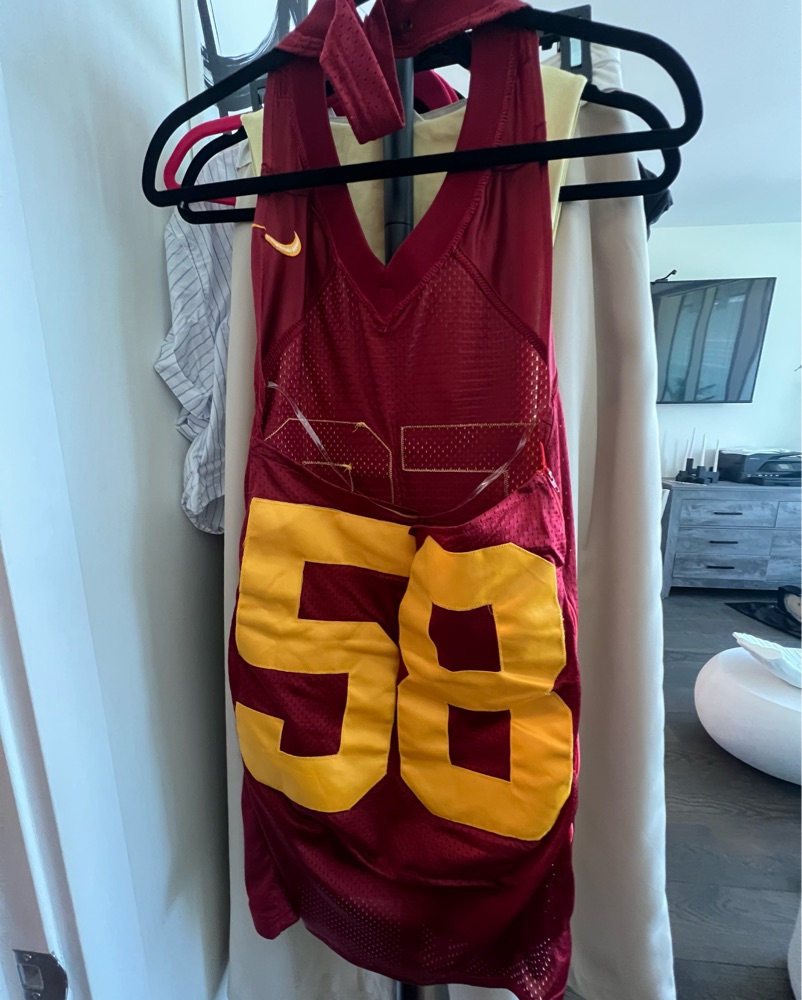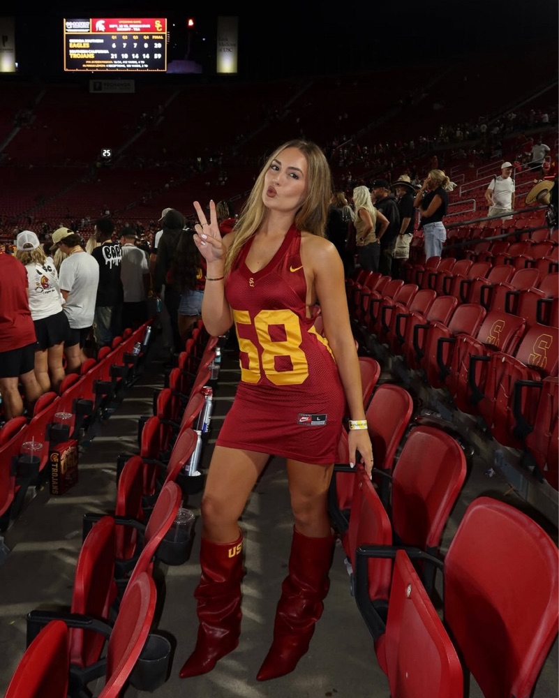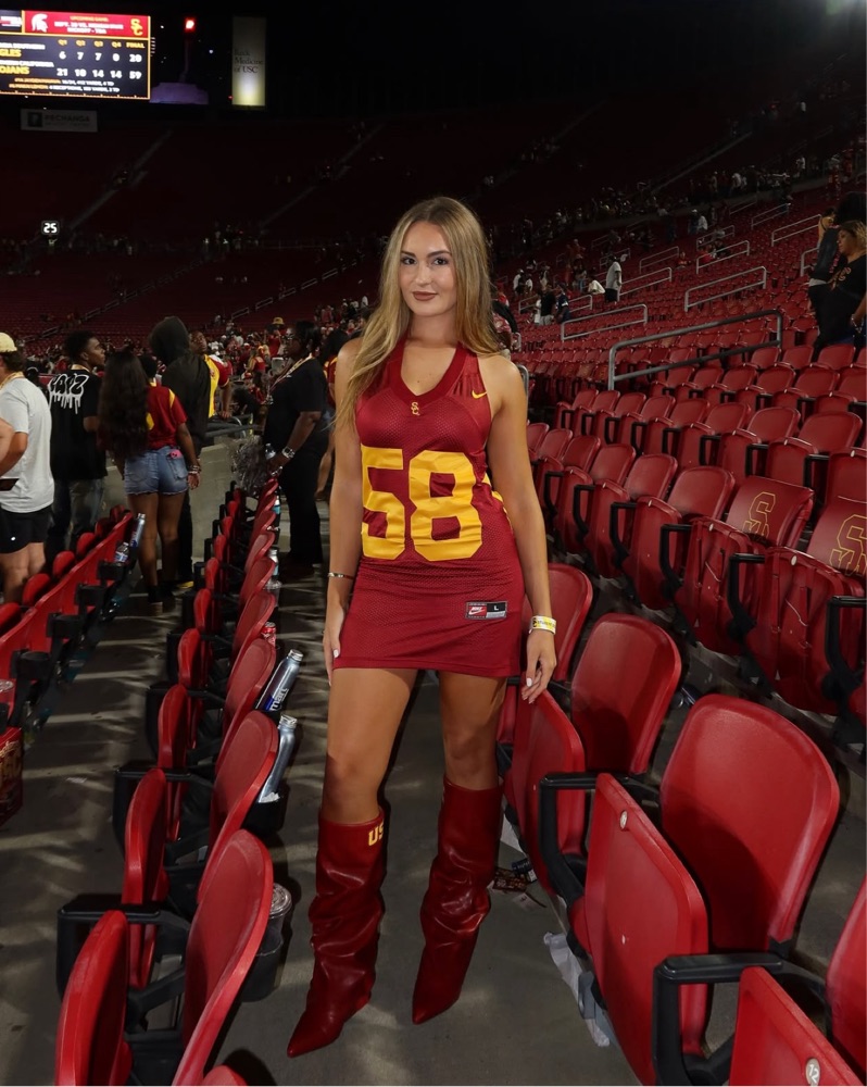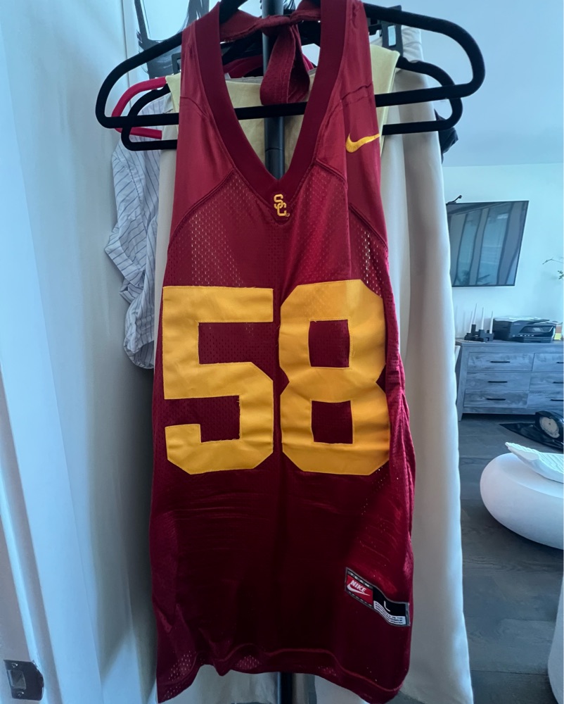 This vibrant and stylish game day dress is perfect for cheering on the USC Trojans. It has a clear strap on the back for extra support, and I pinned the top so it would fit better but you can adjust it. Please do not wash this piece, dry cleaning costs are factored into the price. Fits like an XS/S