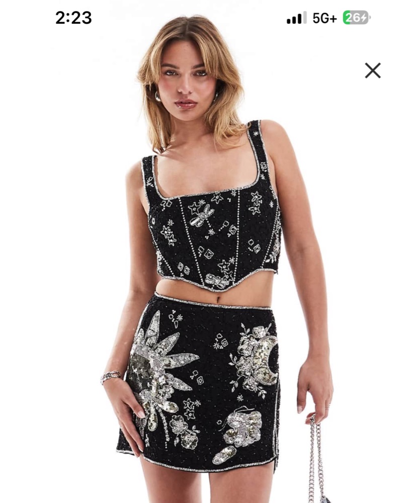ASOS embellished celestial set, top is size 4 and bottom is size 6