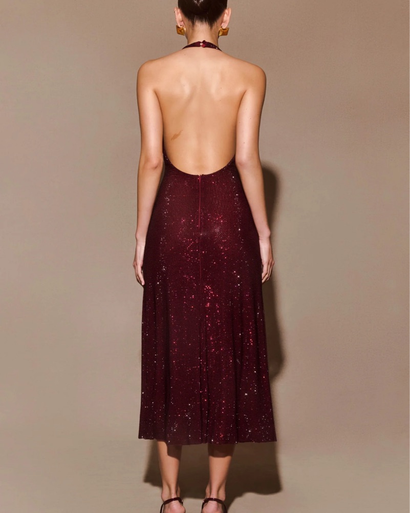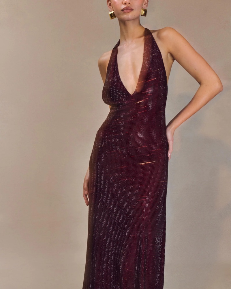 Meshki genie dress in mahogany! Most gorgeous, flattering halter dress. Please handle with care! I’m 5’3” for height reference in the last photo.