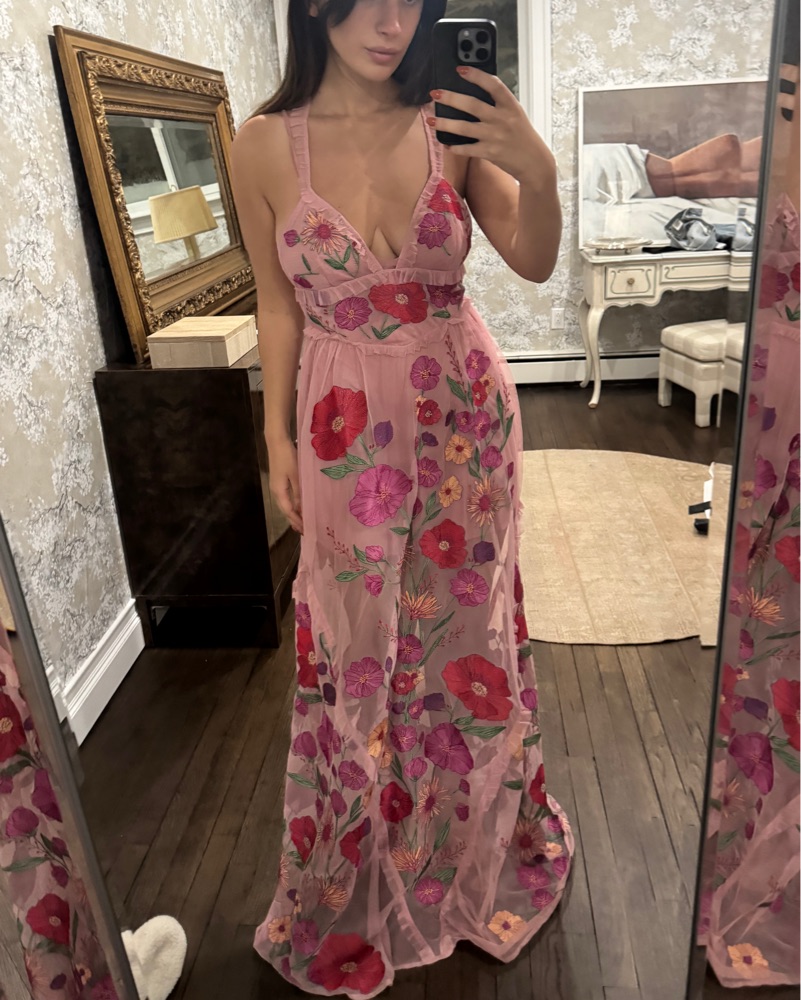 Amazing dress for several occasions! Worn once to a bridal shower. Slip is included