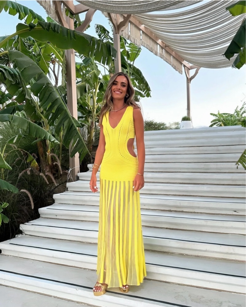 Viral Ronny Kobo Yellow Cutout Crochet Maxi Dress. Brand new. I have 2 message for availability! Size small - true to size: Please wear with care and avoid damaging! Tags: vacation dress, yellow dress, tequila sunrise, neon, yellow maxi, cutout