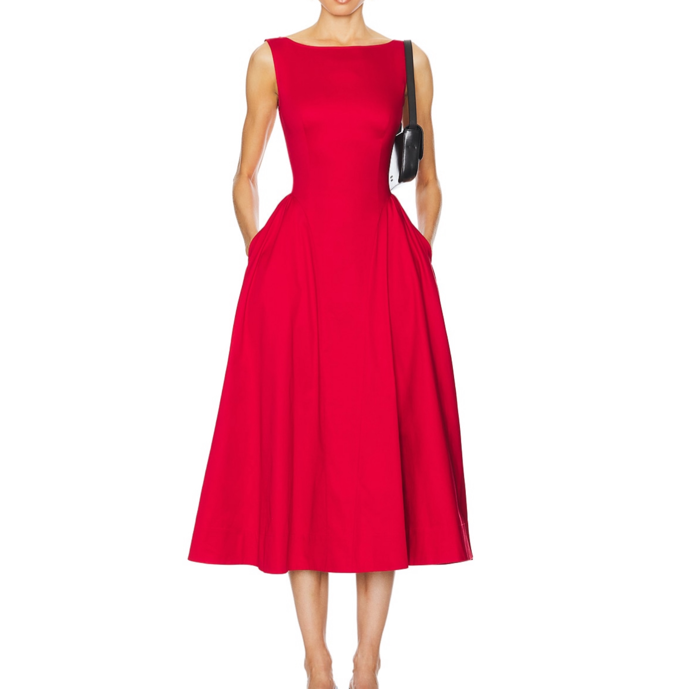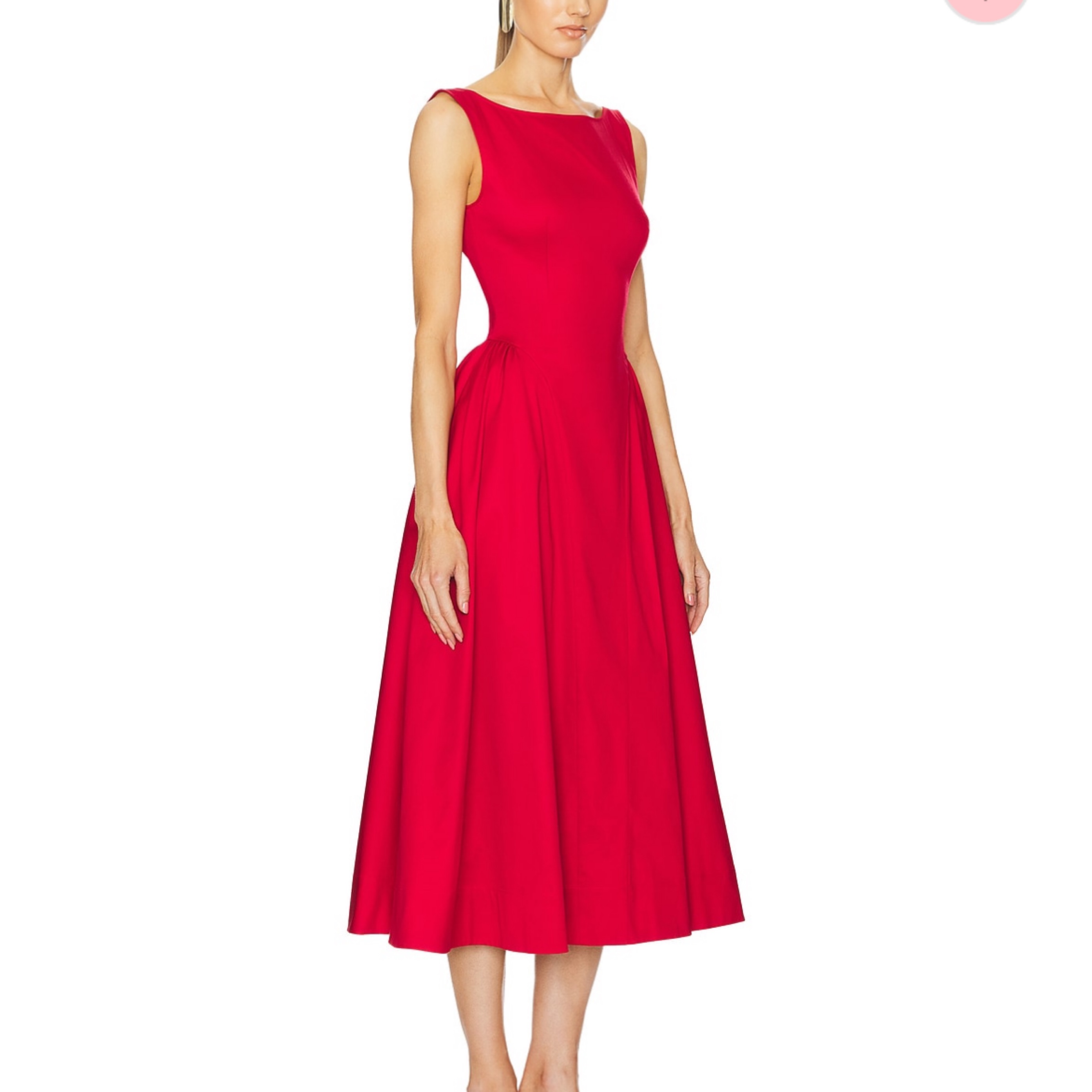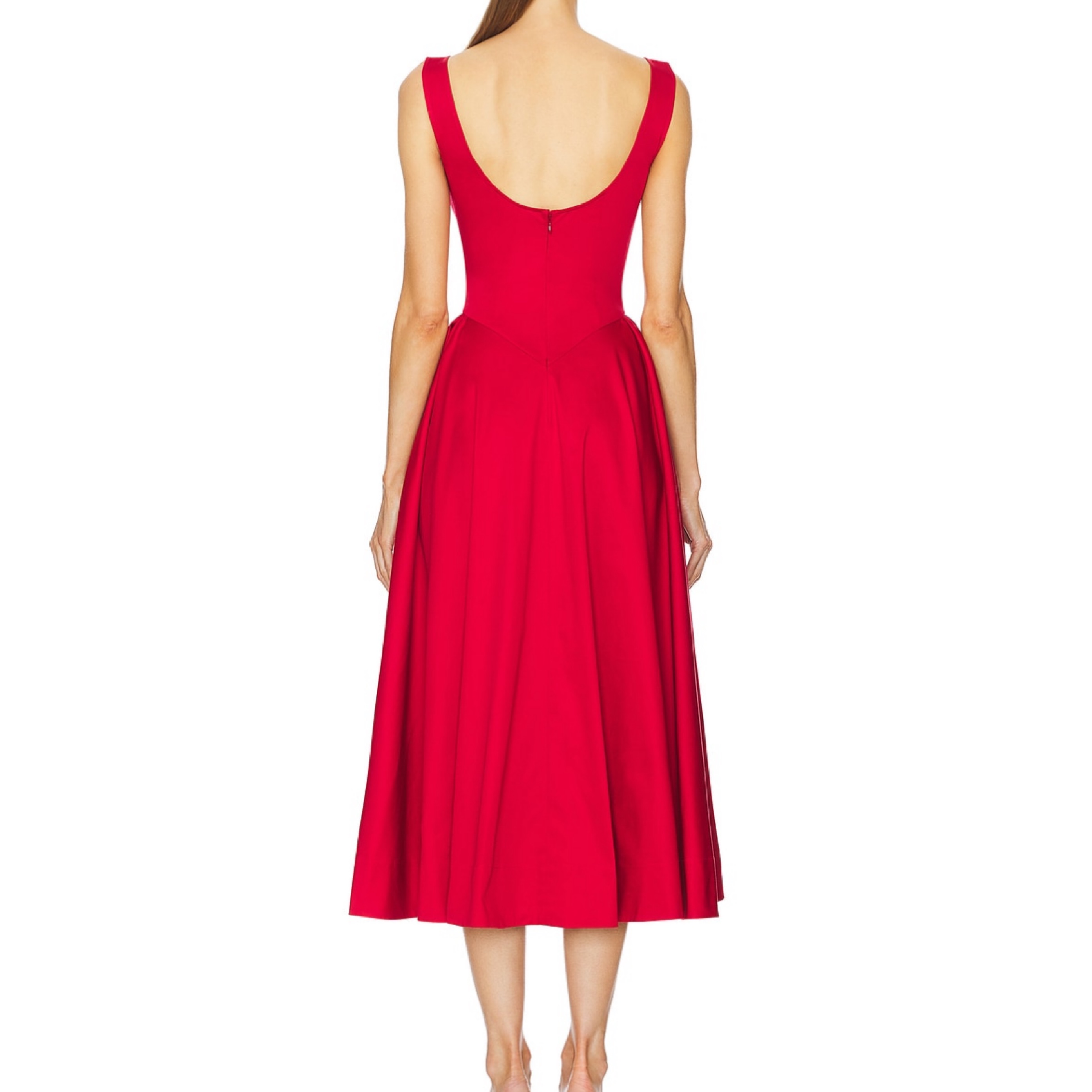 Helsa Stretch Cotton Sateen Midi Dress in Red. Size XS. Brand new & sold out.