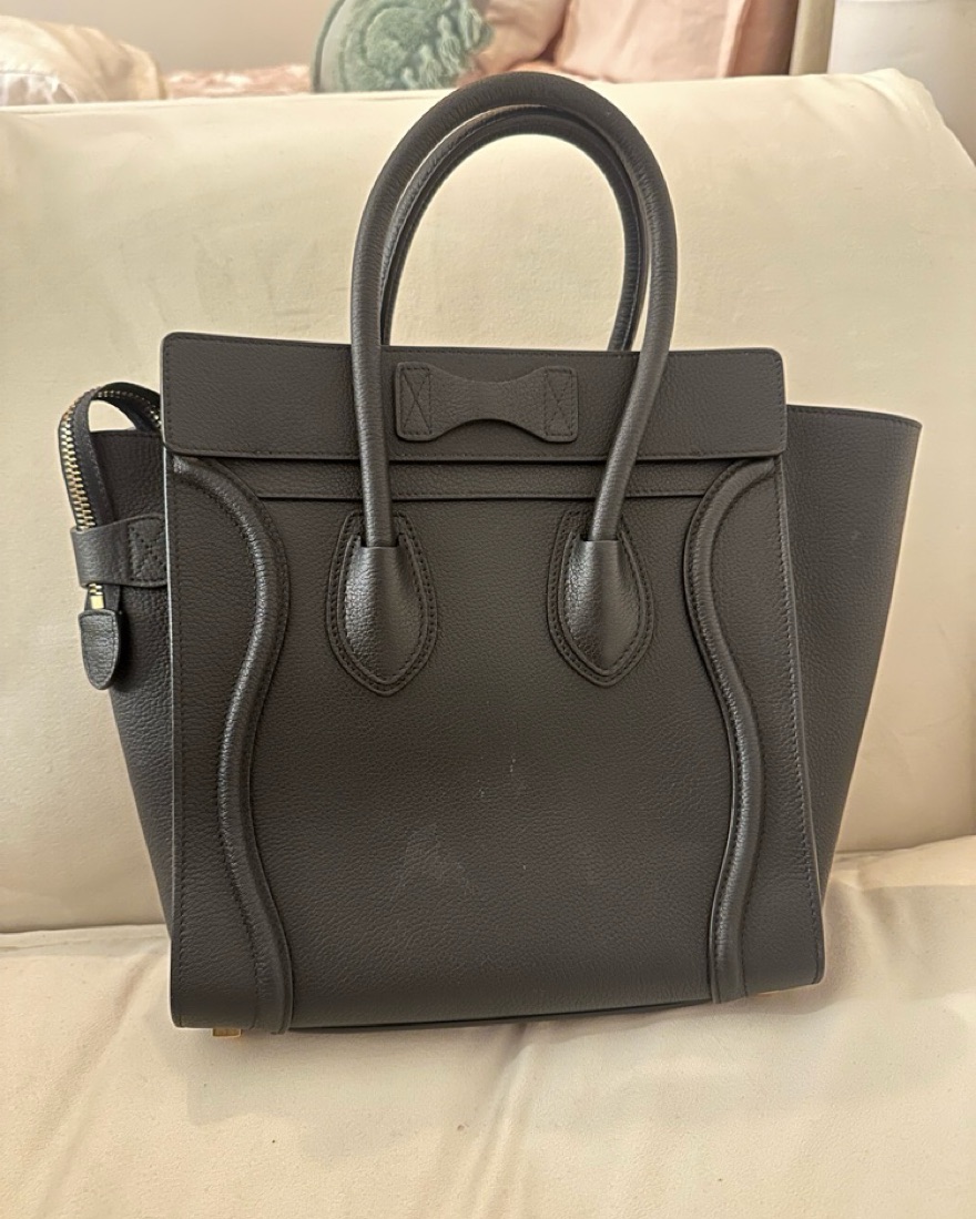 Sleek Celine Satchel in Pebbled Black Leather