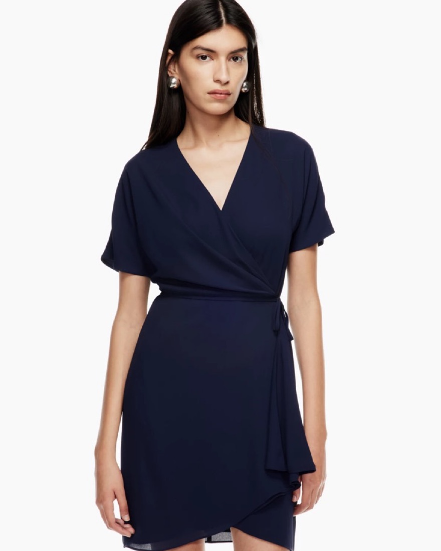 Babaton Navy Wrap Dress by Aritzia - Pickle