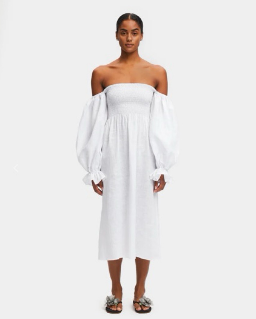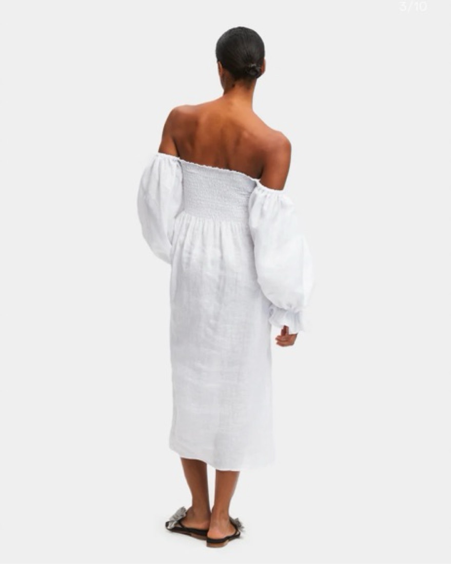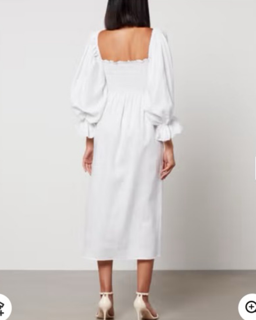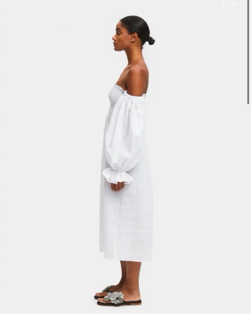 Viral sleeper linen puff sleeve midi dress. Slightly see-through since white linen, very lightweight. Worn once! Extremely stretchy flowy material, would fit sizes 0-8 comfortably. Will need to dry clean after so price reflects that!