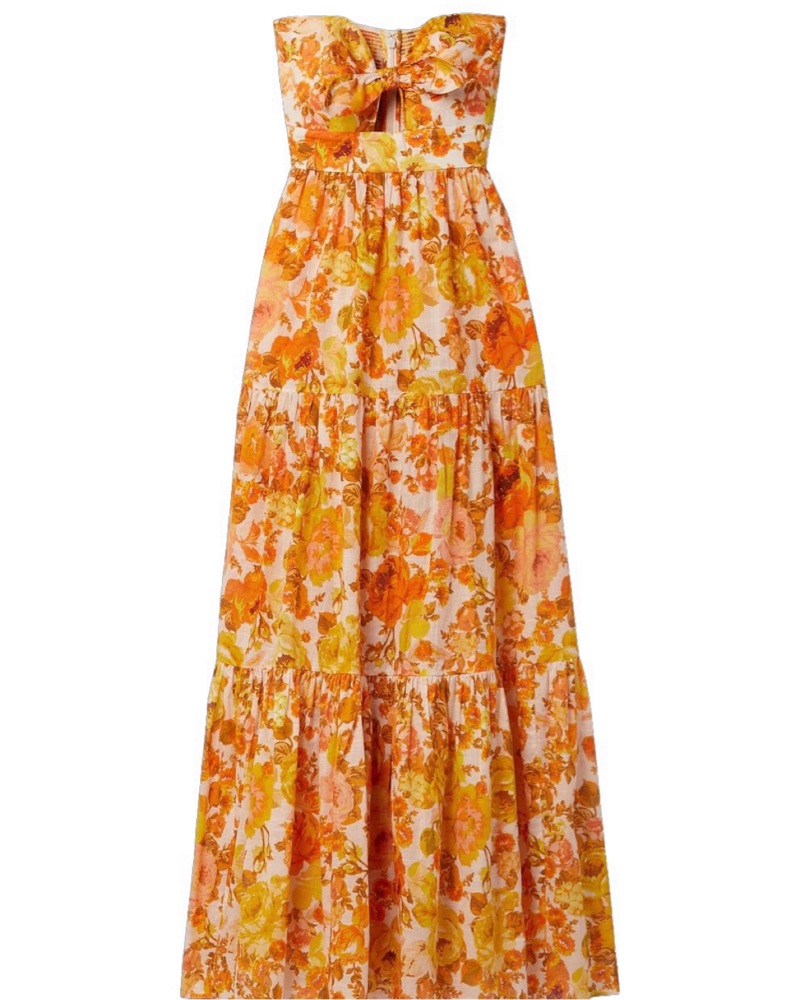 Zimmermann Raie strapless maxi dress in orange. Size 0 (2-4). Worn to a wedding!