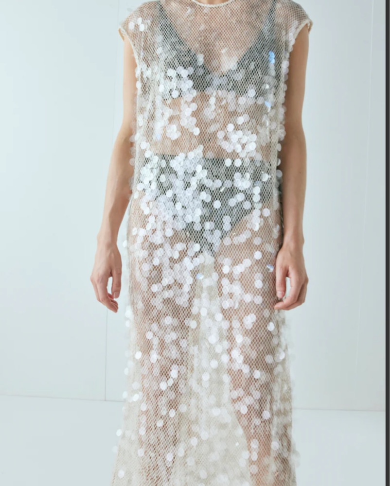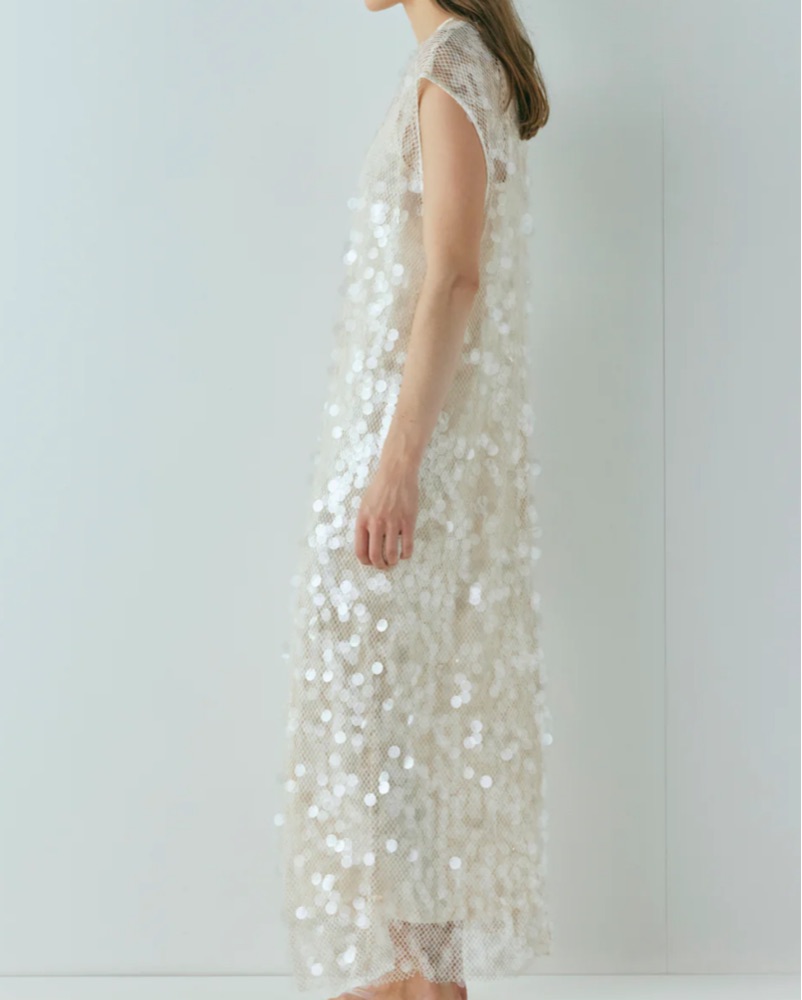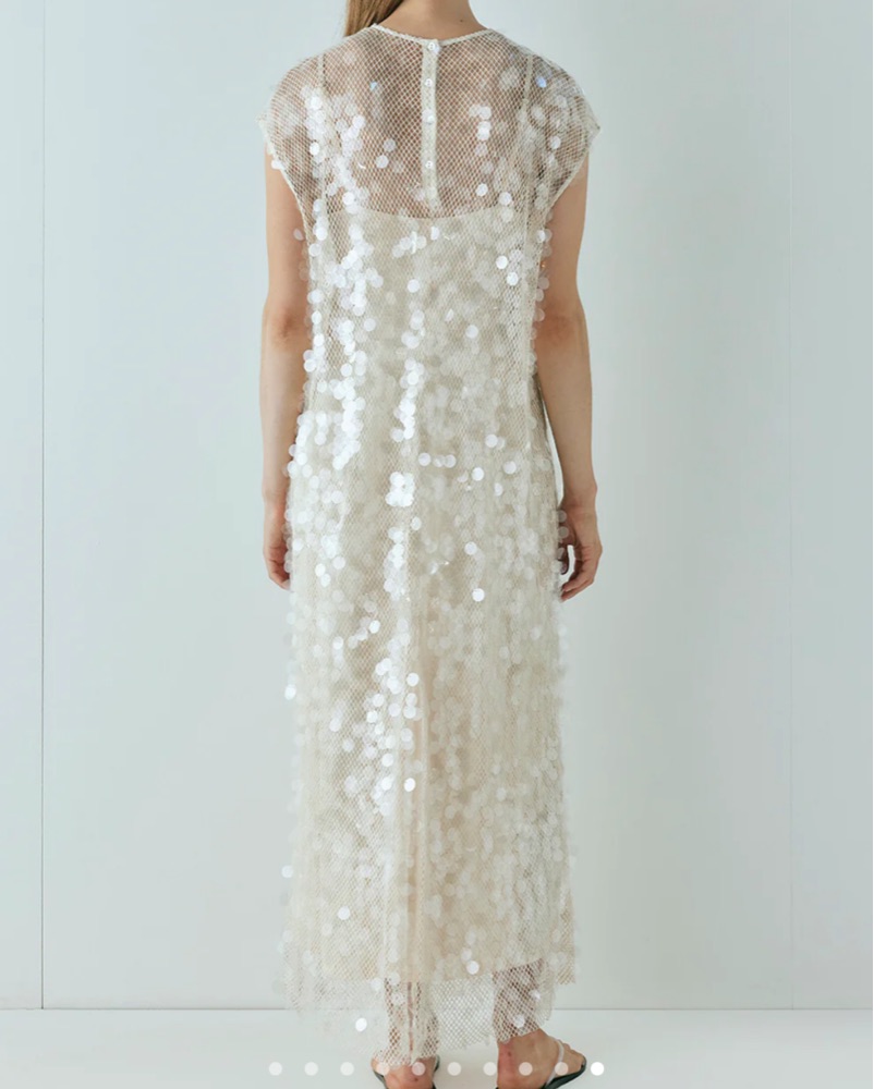 VRG ASTRID SEQUIN MAXI DRESS CREAM
