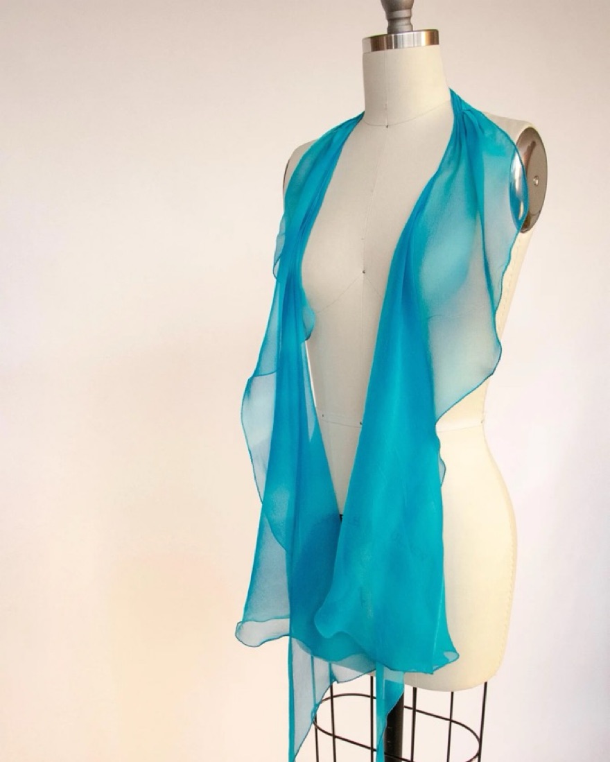 For the girls that get it! Aqua blue silk chiffon. Fits: XS to M Shown on a modern sz 4 dress form