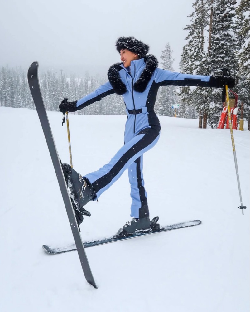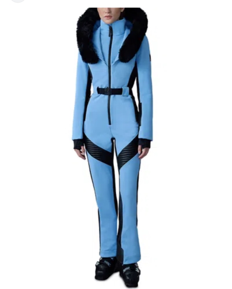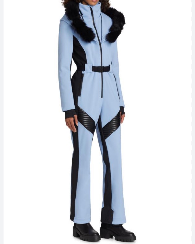 Removable fur trim hood- I am in the photos listed above. Pls be careful when going to the bathroom/ keeping the ski suit clean!