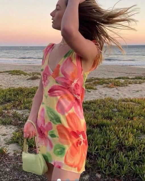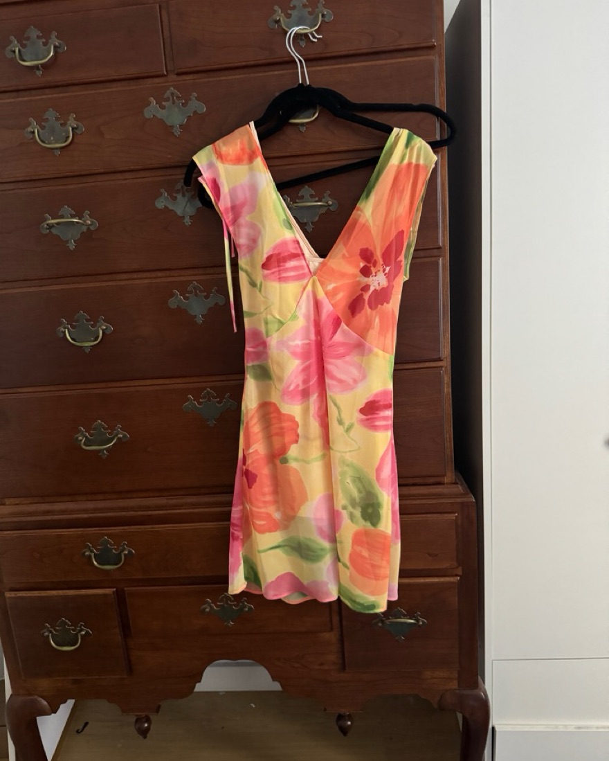 Xxs silk floral withjean dress, so pretty and chic