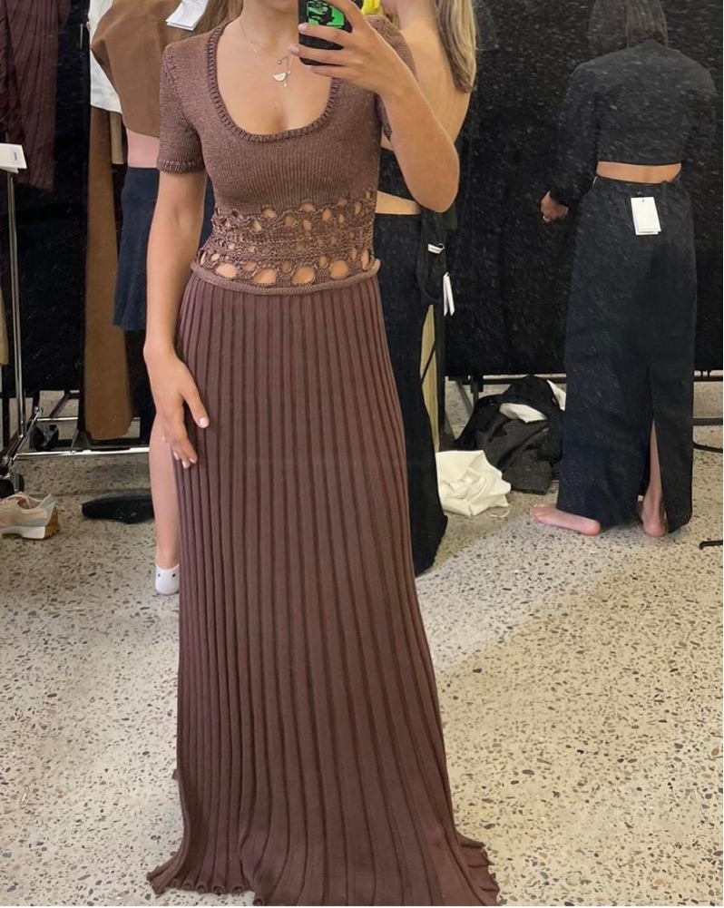 Perfect condition. Size small - true to size with stretch. Please wear with care. Tags: brown maxi dress, brown knit dress, fall dress, going out, baby shower, chocolate brown