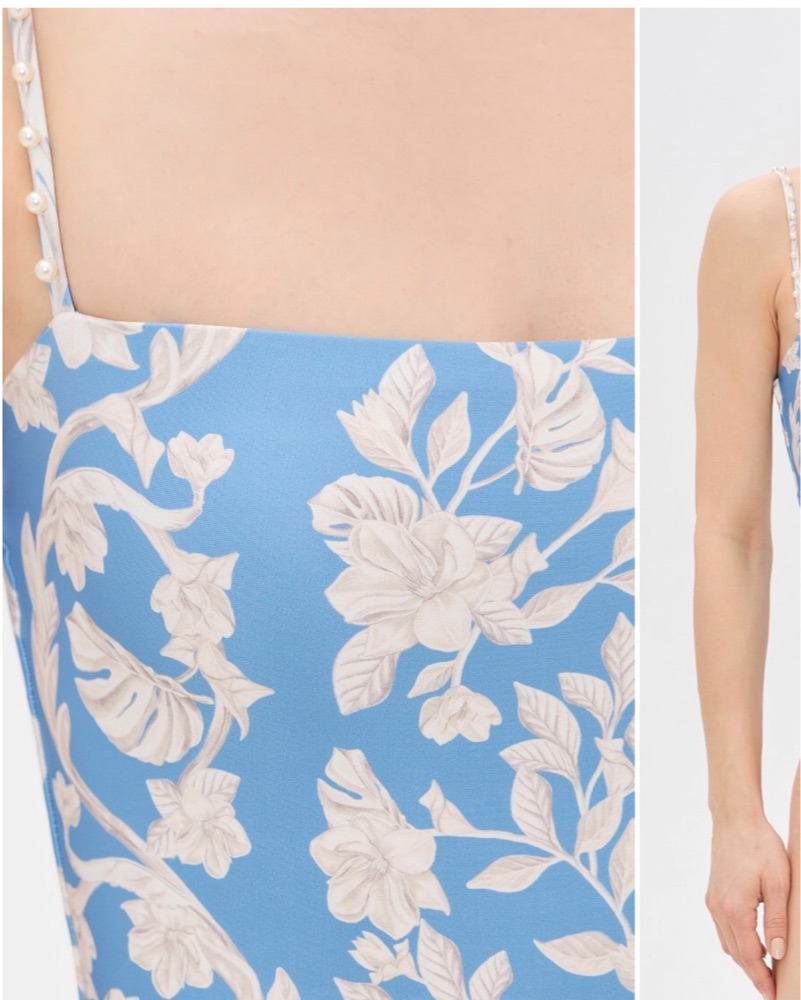 This Agua by Agua Bendita Durazno Madera One Piece swimsuit. Please be very delegate as the pearls on the straps are fragile. One strap has missing pearls. Xs/s fits so flattering!