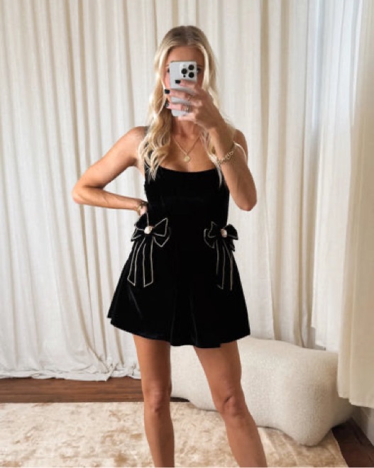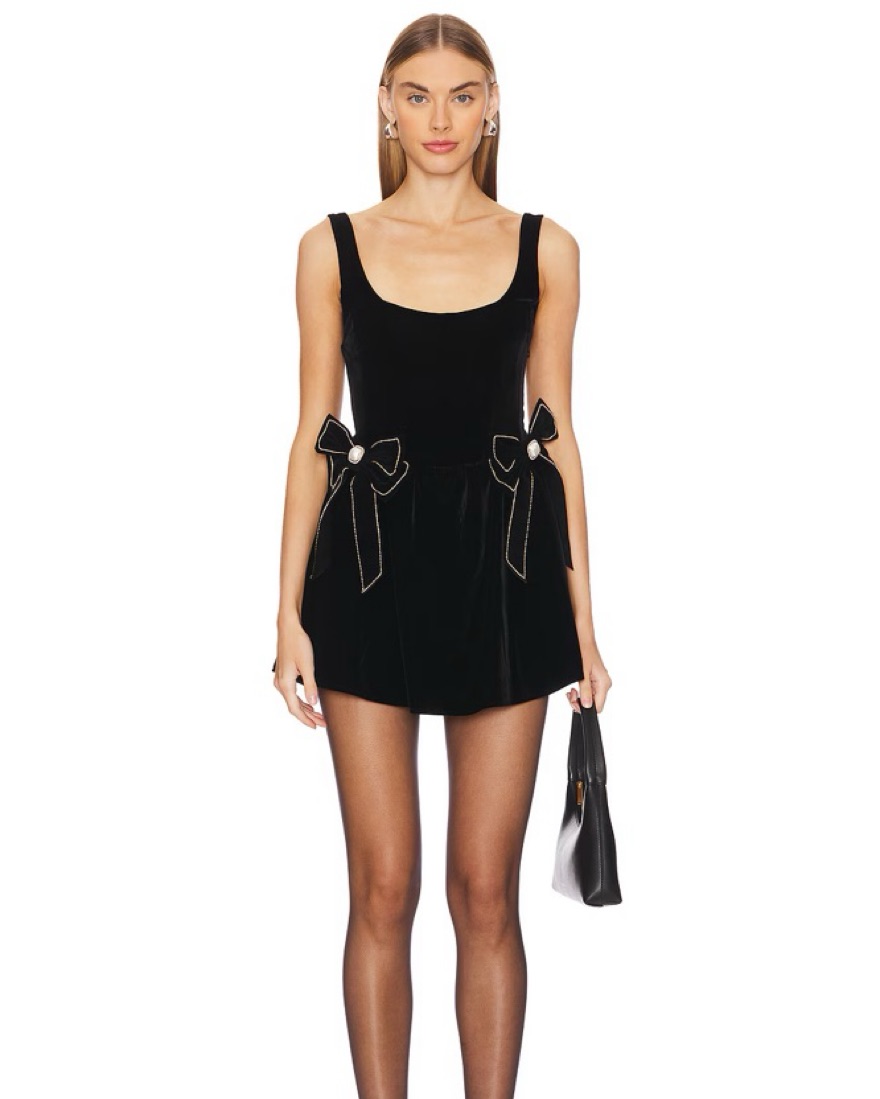 This stunning velvet dress is perfect for a night out or a special occasion. The bow detail adds a touch of elegance and glamour.