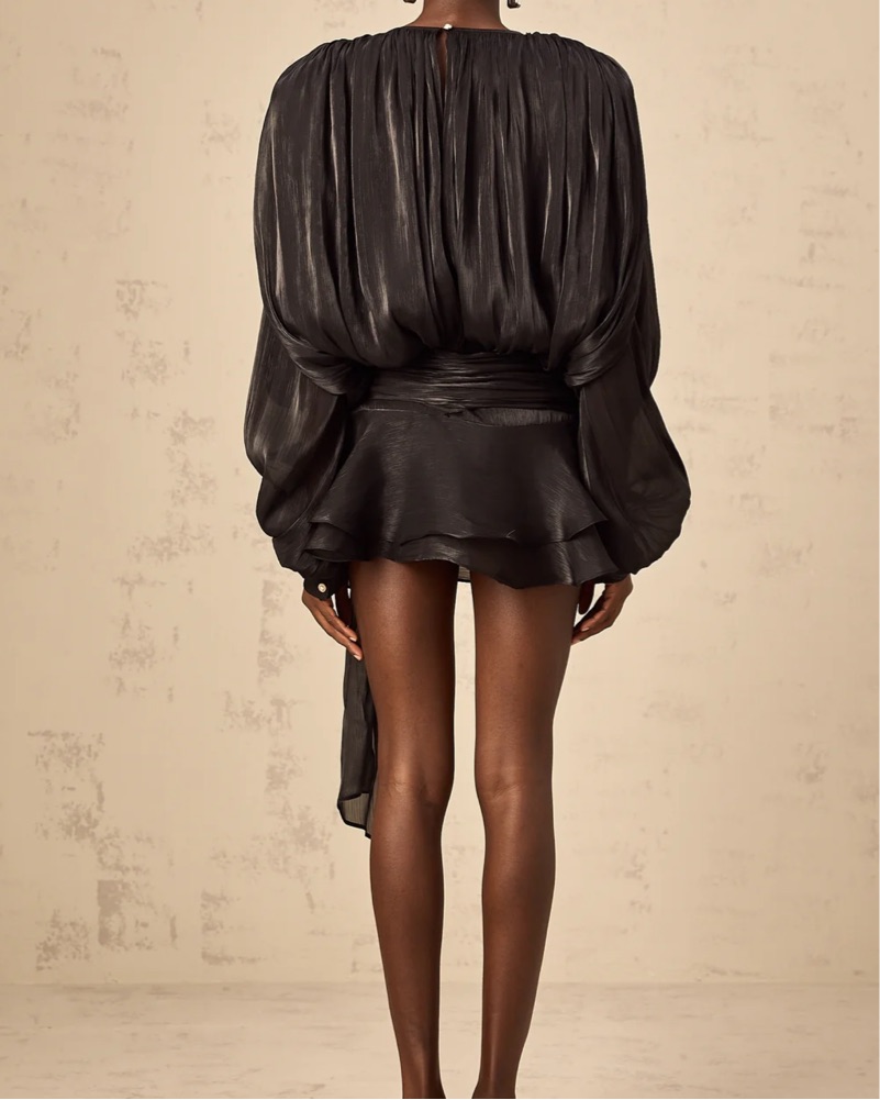 The perfect black satin minidress! Dramatic puff sleeves, ruffled hem, shoulder pads! Perfect for a night out! comes with matching shorts 🖤