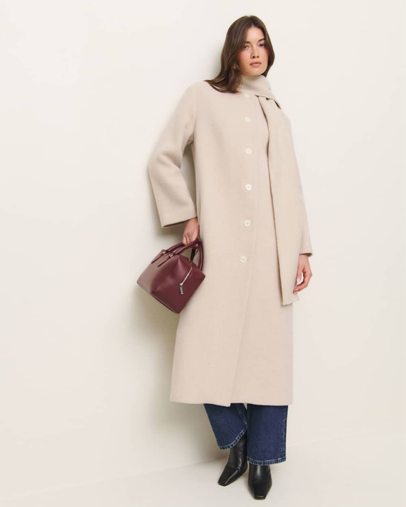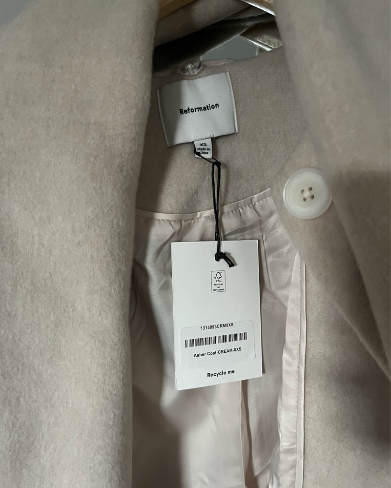 This stylish and versatile cream-colored coat is perfect for dressing up or down. Pair it with your favorite jeans and boots for a casual look or wear it over a dress for a polished, sophisticated outfit.