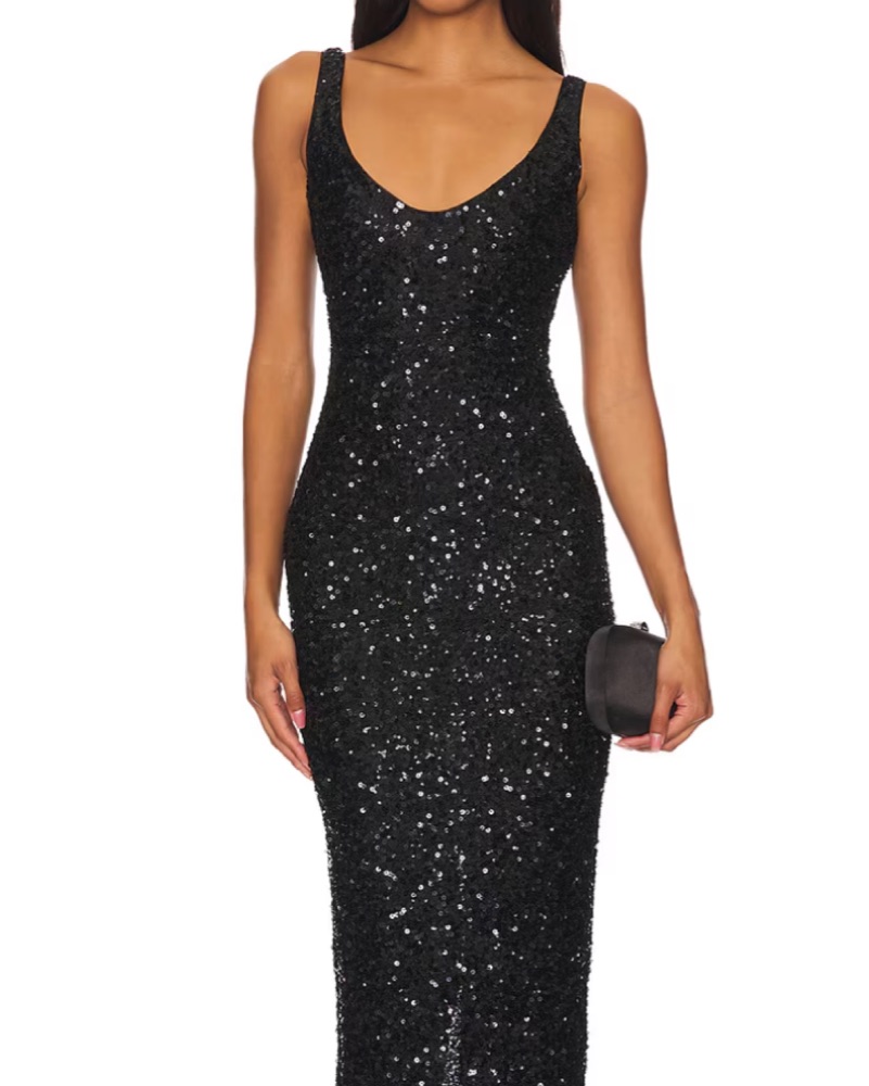 This stunning black sequin dress is perfect for a glamorous night out. The figure-hugging silhouette and eye-catching sequins create a show-stopping look.