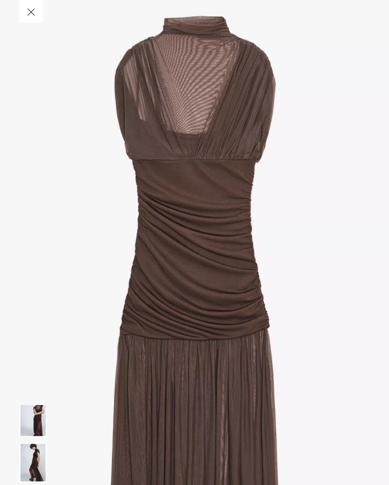 Brown Mesh Detail Long Dress by ZARA - Pickle