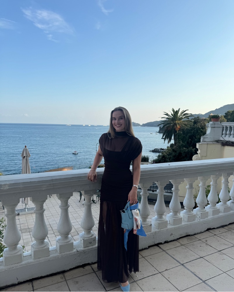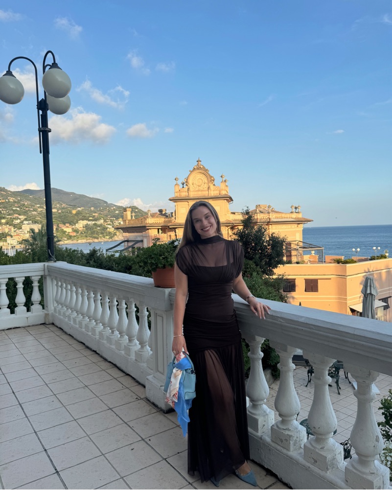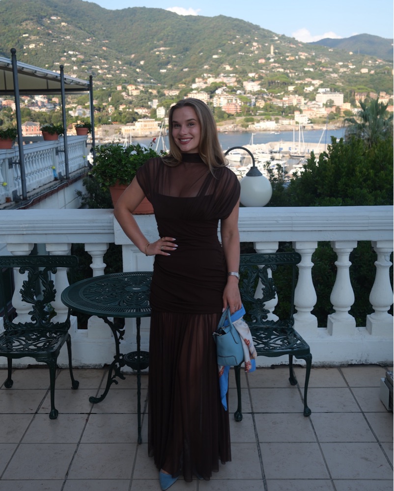 Beautiful brown dress that fits wonderfully! Mesh accents - only worn 1x as pictured.