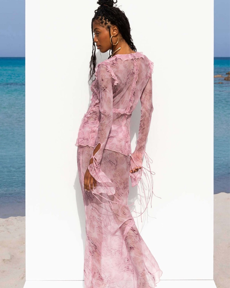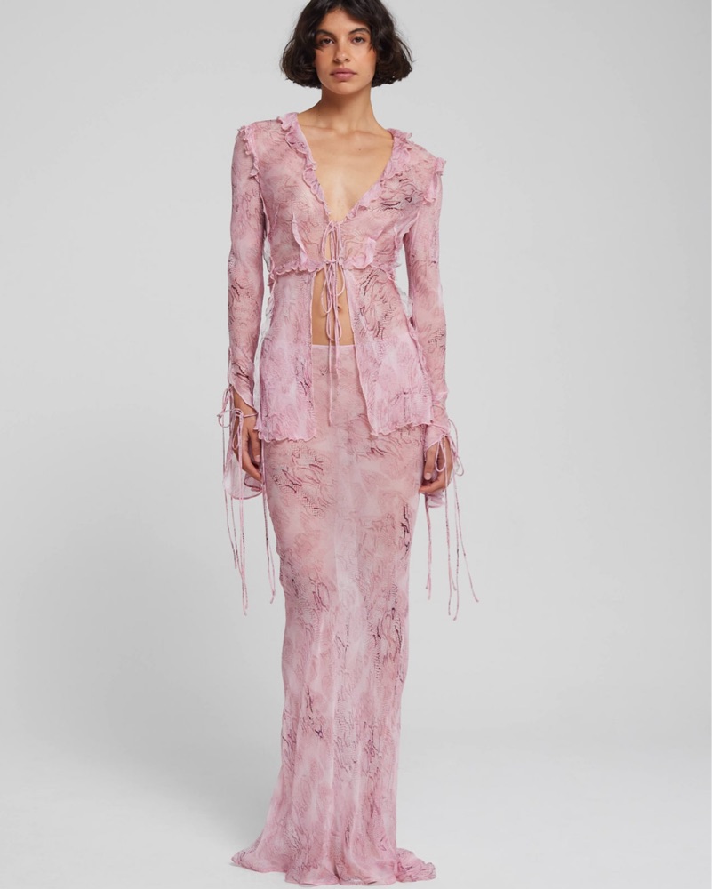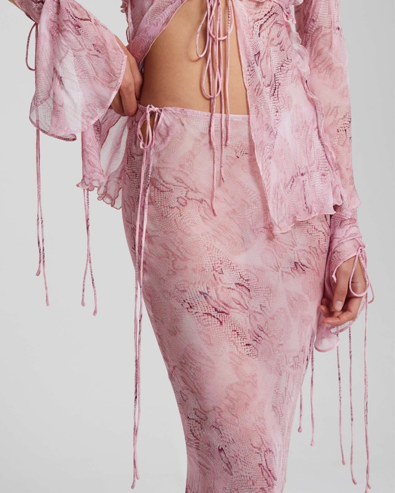 A silky, fluid slip skirt crafted in a luxe crinkle viscose, the Cobra has added drama courtesy of a mini floor-skimming train at the back. Printed with a soft and subtle snake print against a moody, grunge-fuelled shade of pink, it’s an ultra-versatile blend of ease and elegance you'll want to wear