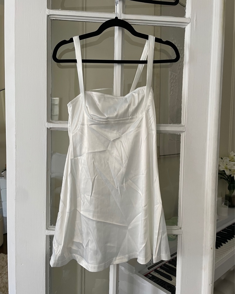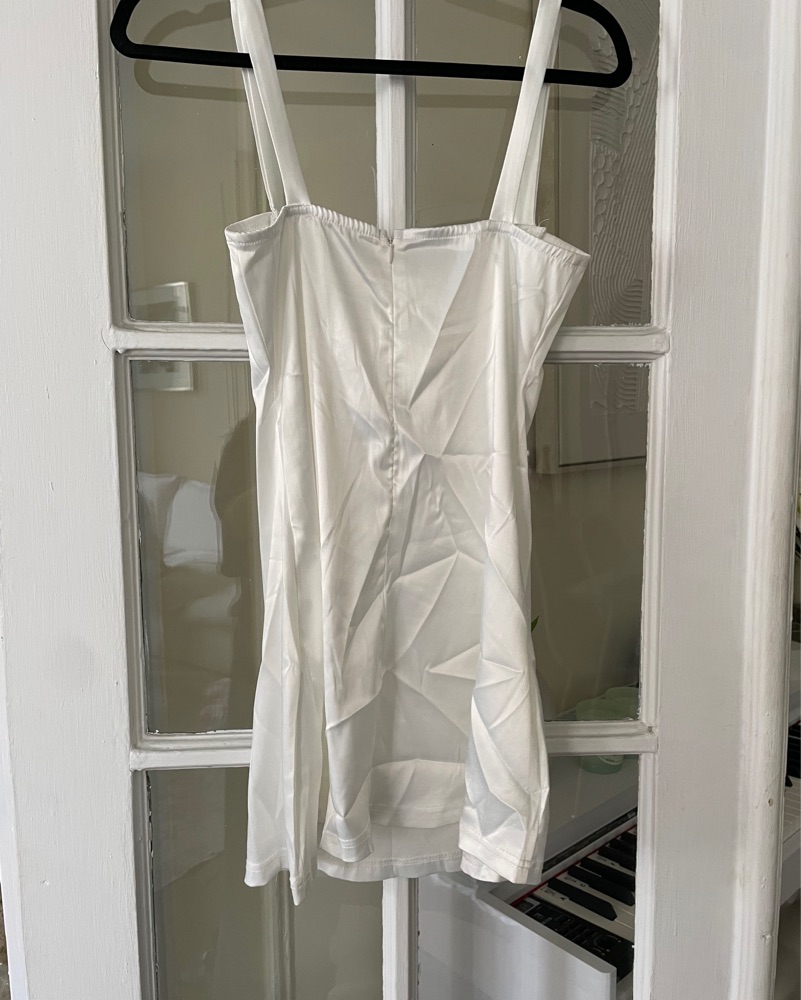 This stunning satin dress is perfect for special occasions or formal events. The clean lines and flowing silhouette create an elegant and sophisticated look. Stretchy