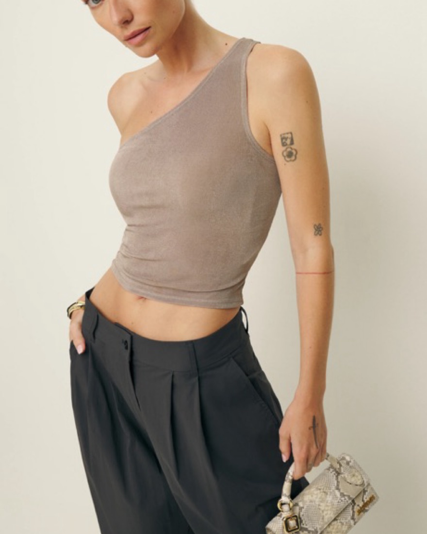 reformation one shoulder knit top