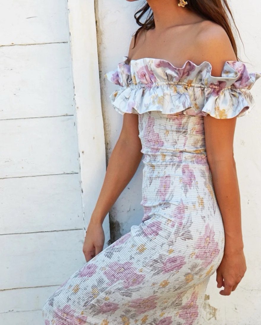 Off The Shoulder Ruffle Dress / V Chapman Off lilac dress
