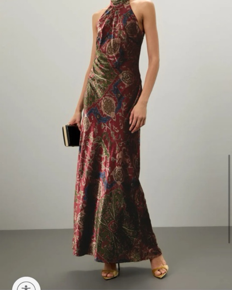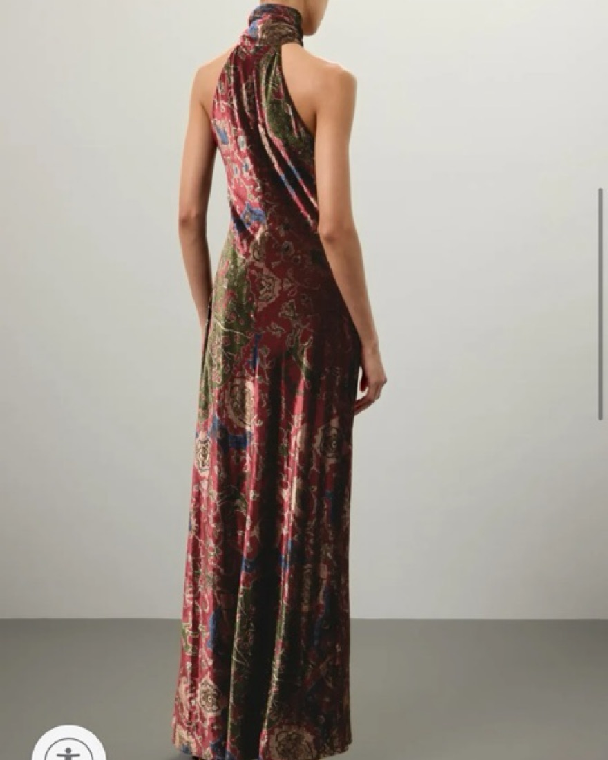 Printed velvet halter gown