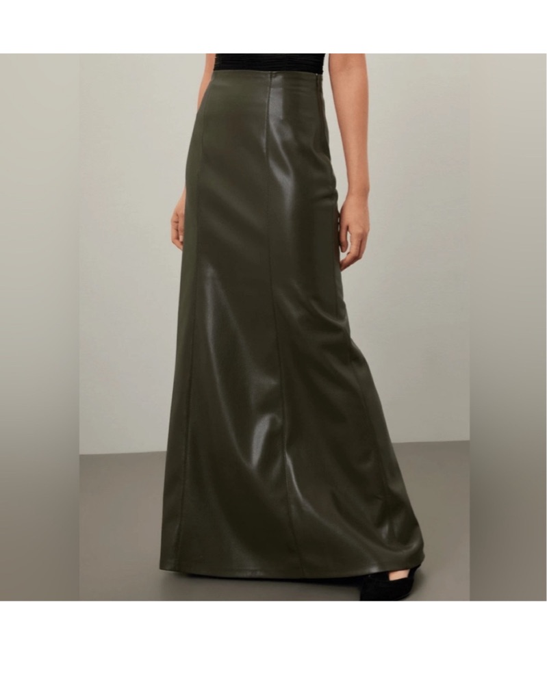 Nanushka Olive Faux Leather Maxi Skirt by Nanushka - Pickle