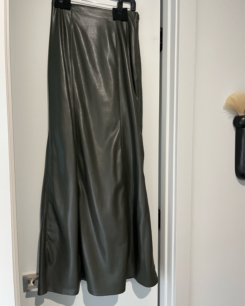 Nanushka Olive Faux Leather Maxi Skirt