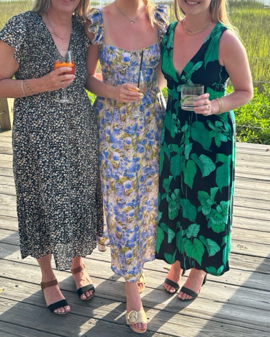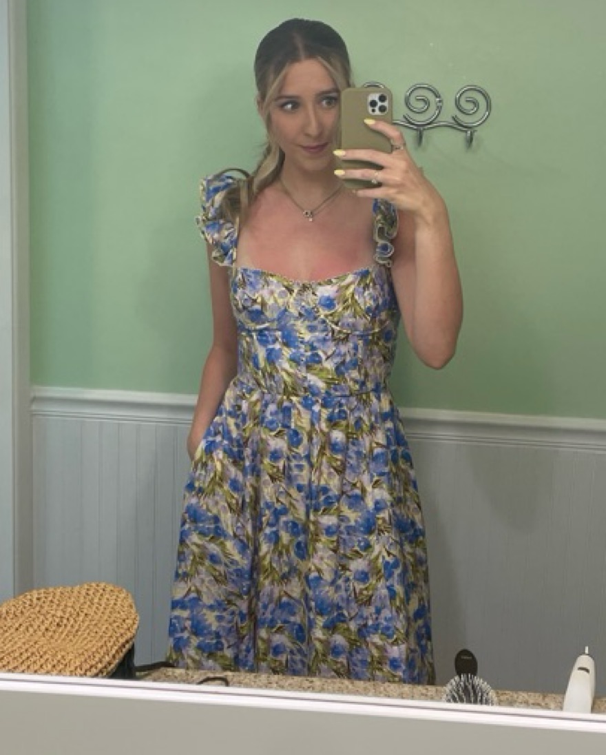 WEDELIA FLORAL BUSTIER MIDI DRESS. Perfect wedding guest dress! I typically wear a medium but the tie back of this allows for the dress to fit M-L.