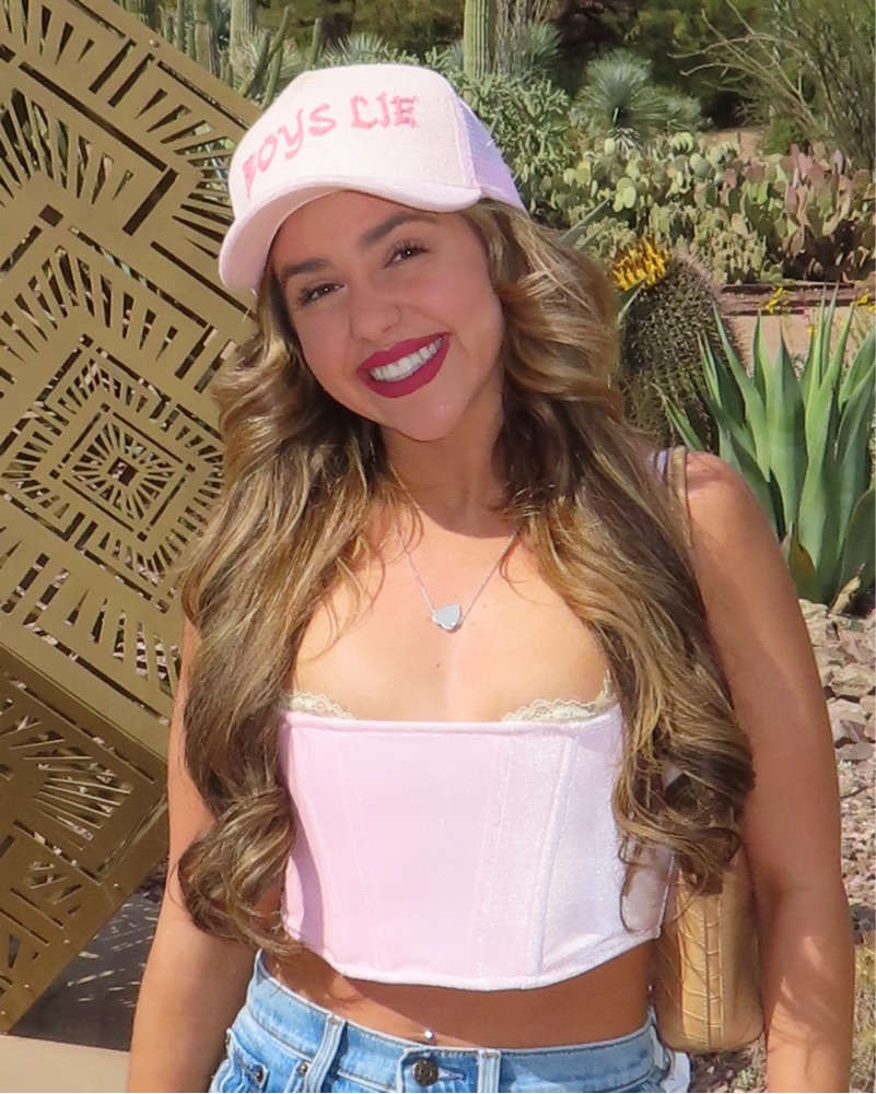 This playful and stylish outfit is perfect for a summer day or night out with friends. The lace-trimmed cropped cami adds a touch of femininity, while the high-waisted denim shorts create a flattering silhouette.