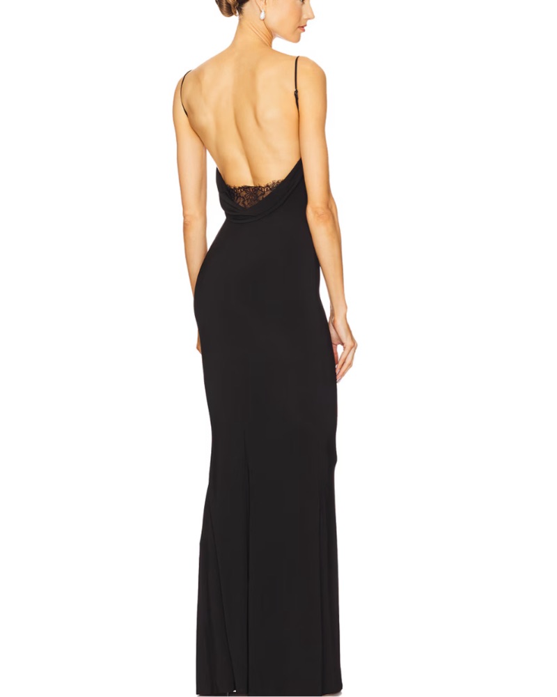 super flattering! perfect for wedding or special occasion Adjustable shoulder straps Draped neckline Draped back with lace detail