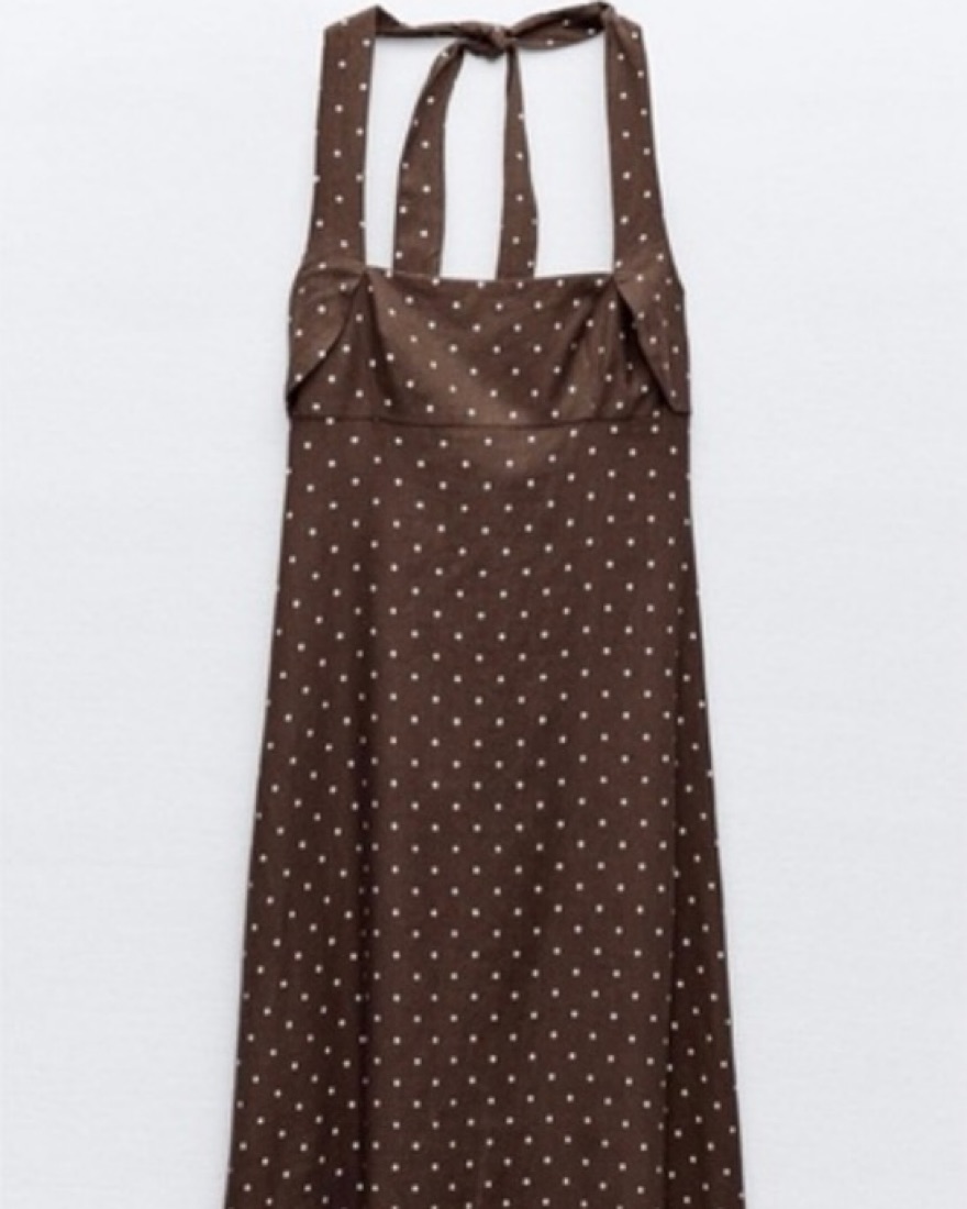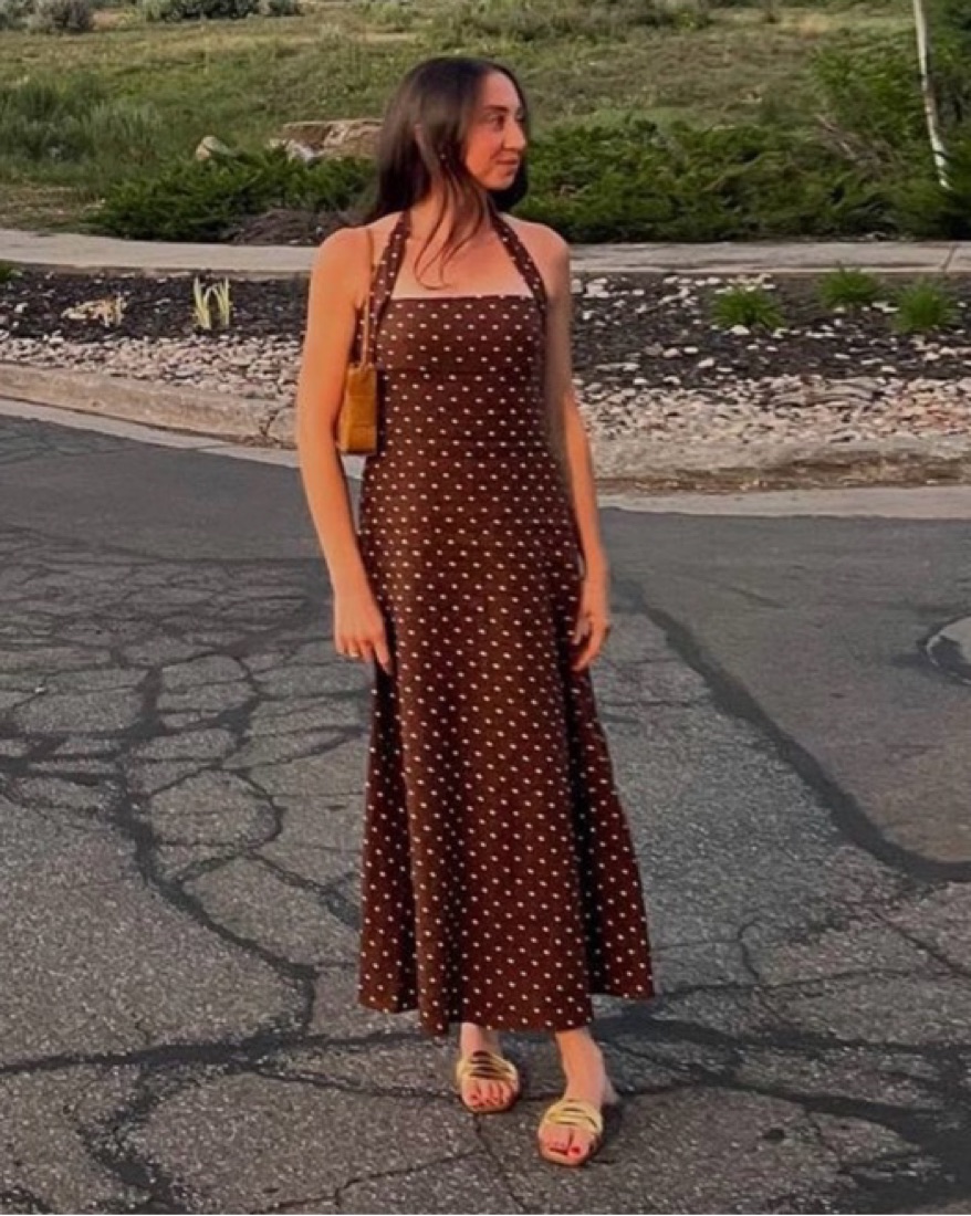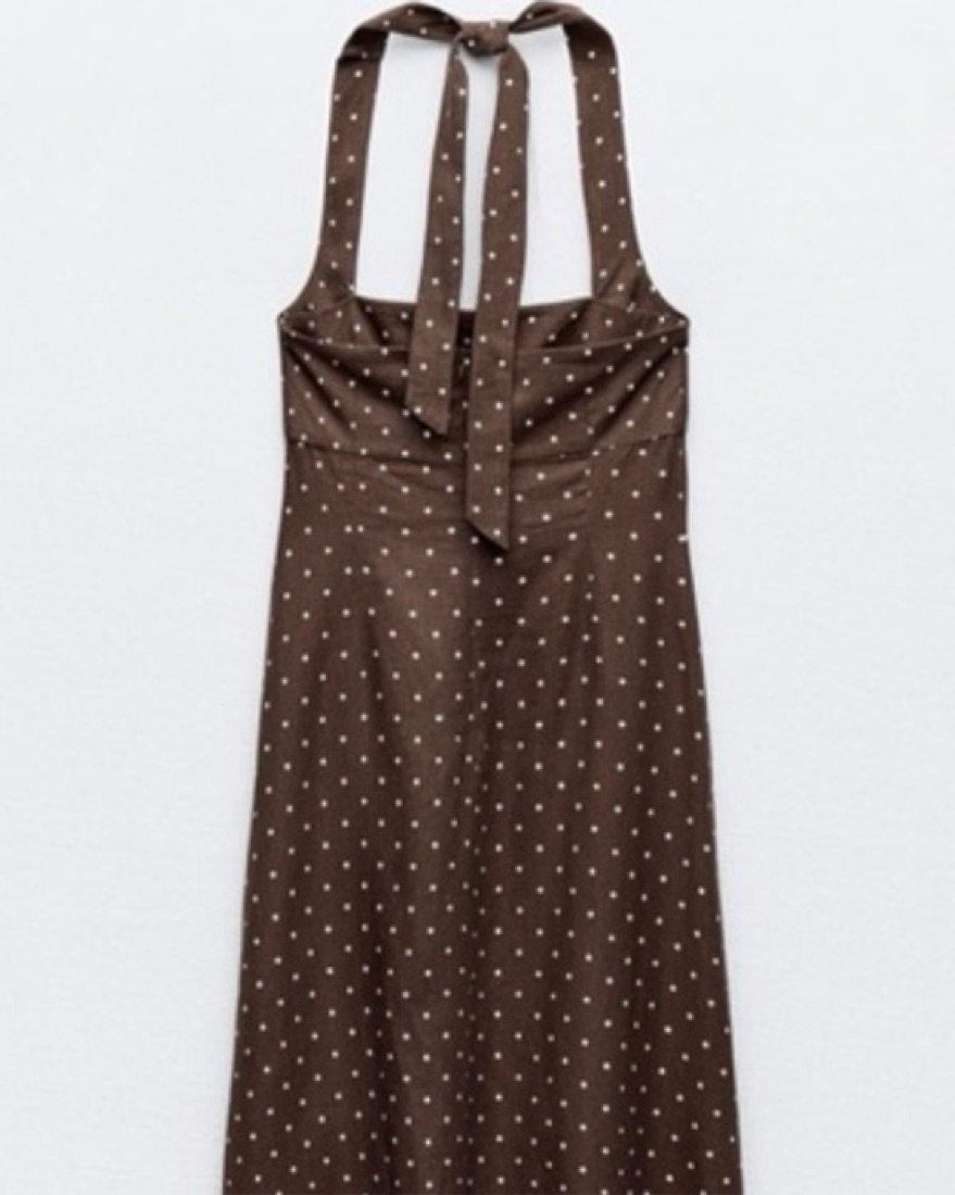 Zara Polka Dot Halter Maxi Dress in Brown and White.