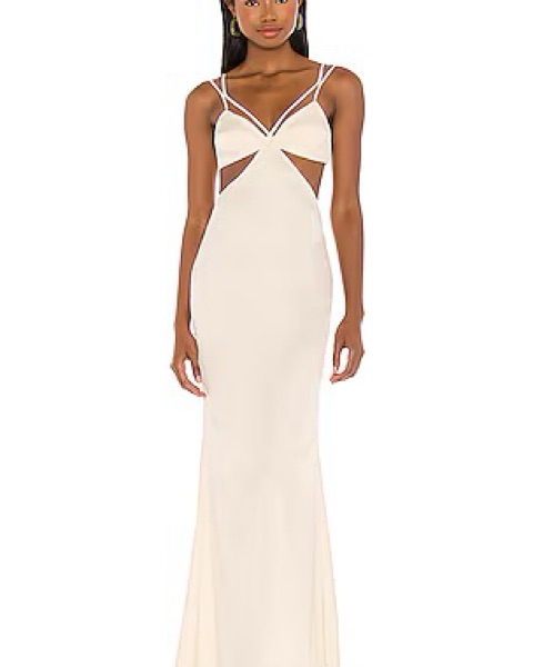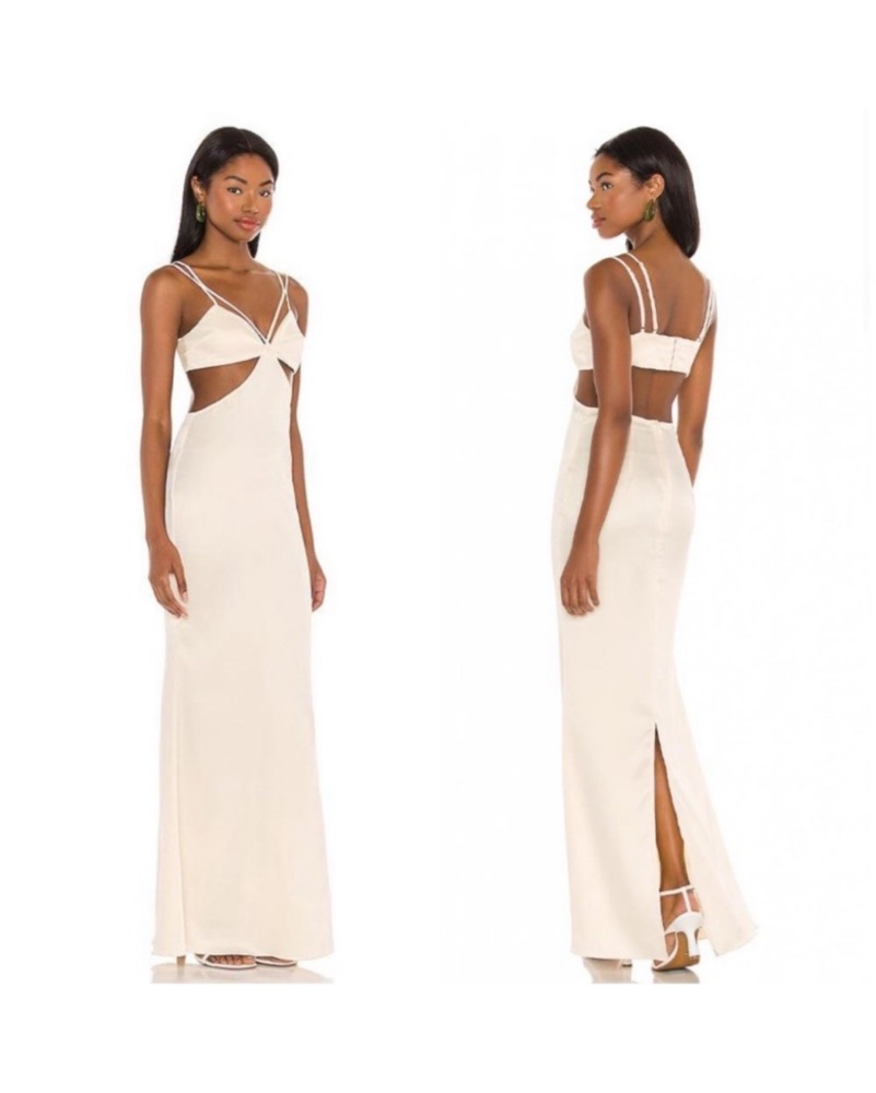 Beautiful satin gown in a Cream color by Camila coelho with cut out top in size XS/S. Tag size is Small but it fits XS as well and perfect for a size 2