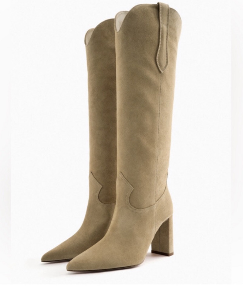 Zara Beige Camel Suede Boots Knee by Zara - Pickle