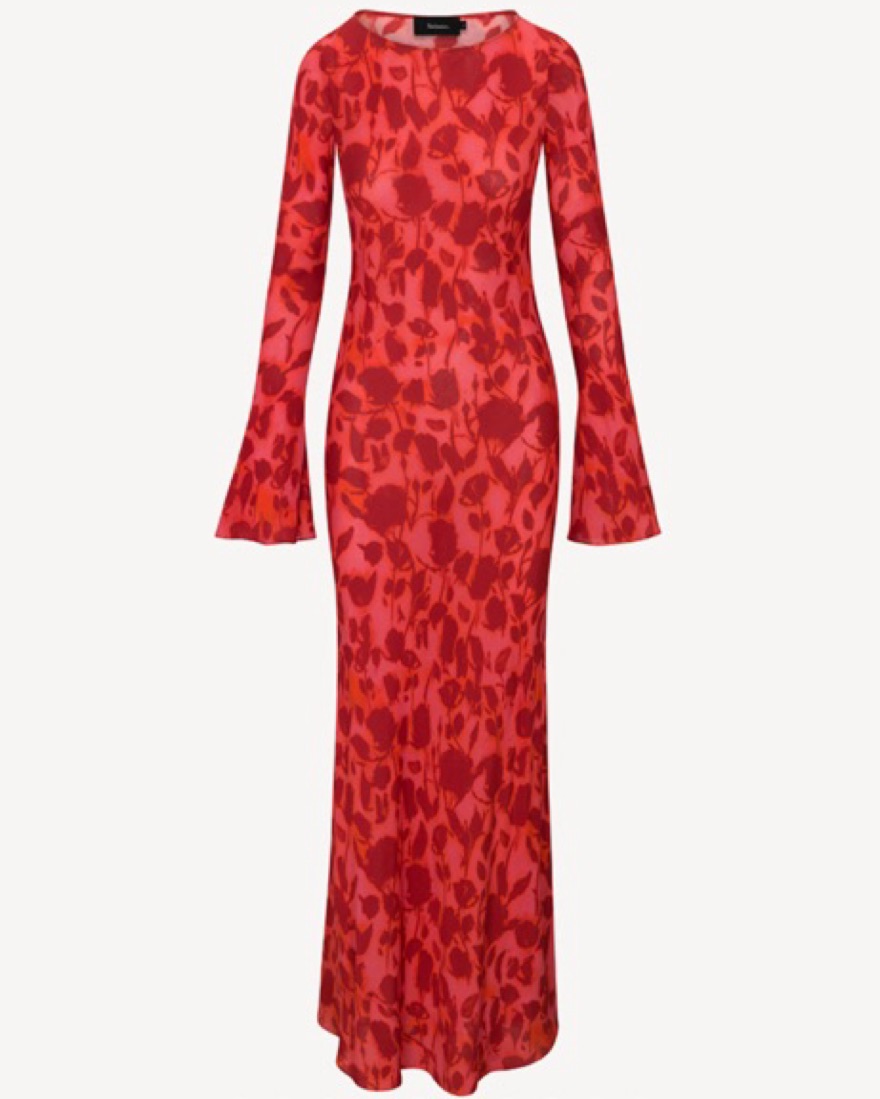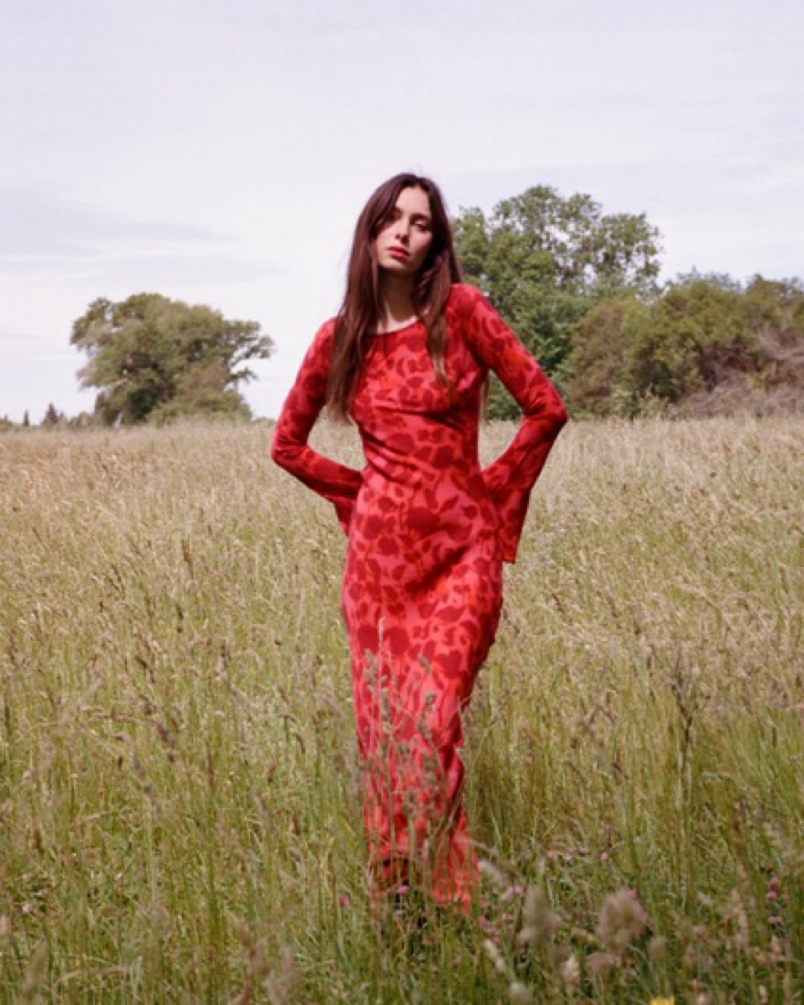 Size S, taken in at the waist a bit, fits like an XS/S. Tailored bottom to fit me better with flats on, I am 5’4”! Bell sleeves and floor length - the Gia is the ultimate refined 70's elegance. Think intoxicating nights in Marrakech as you breeze through wearing the Gia. For all our glamazons