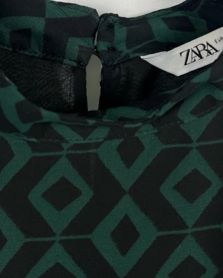 Long Sleeve Printed Holiday Dress by Zara - Pickle