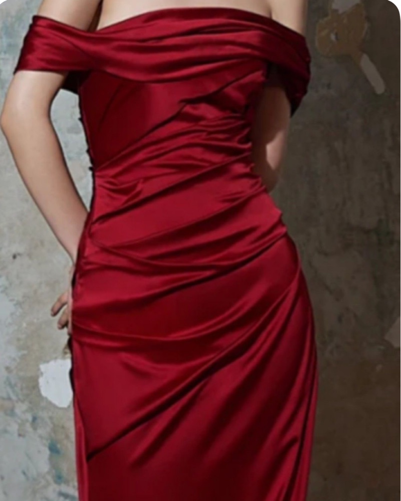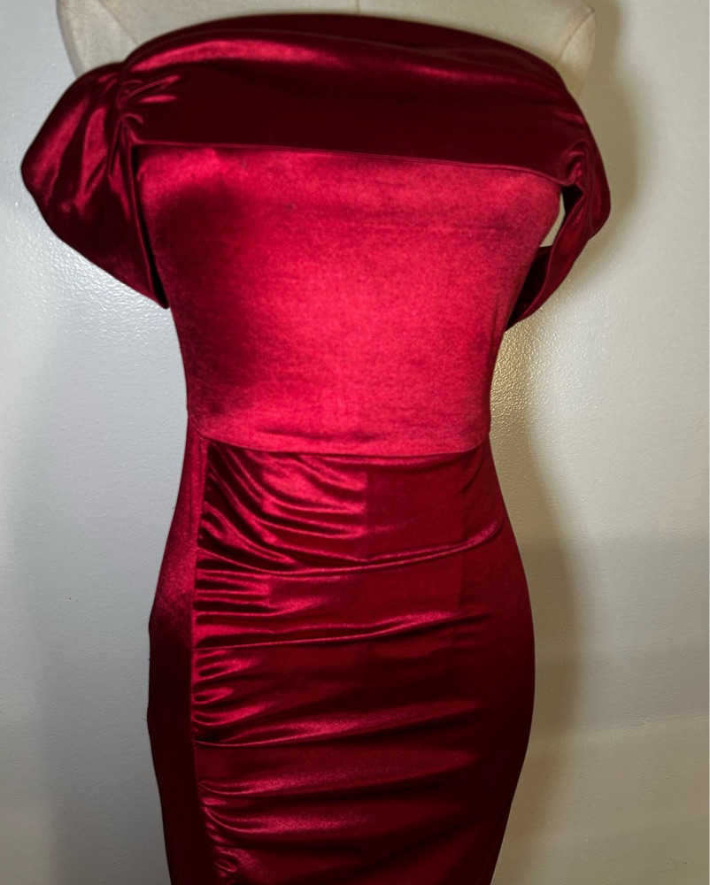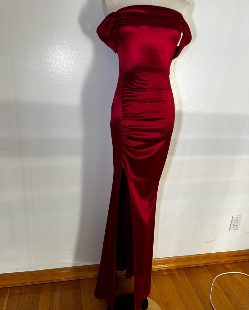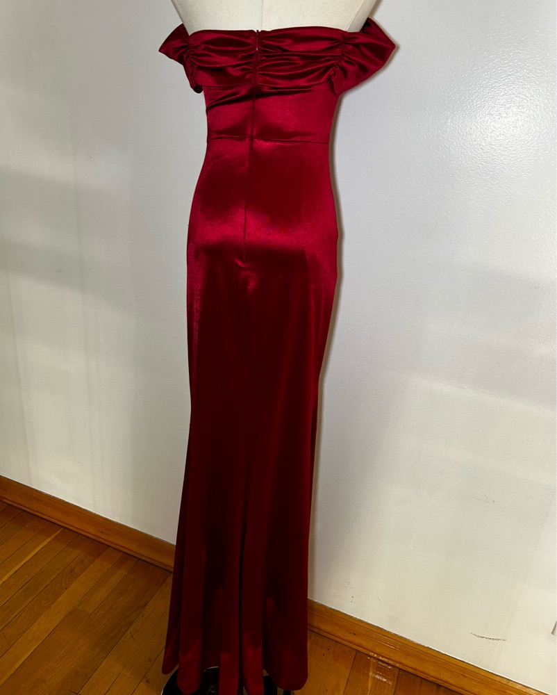 Off the shoulder velvety dark red gown. Fits 0-4/XS-S
