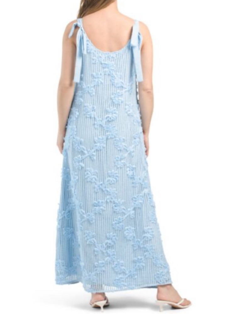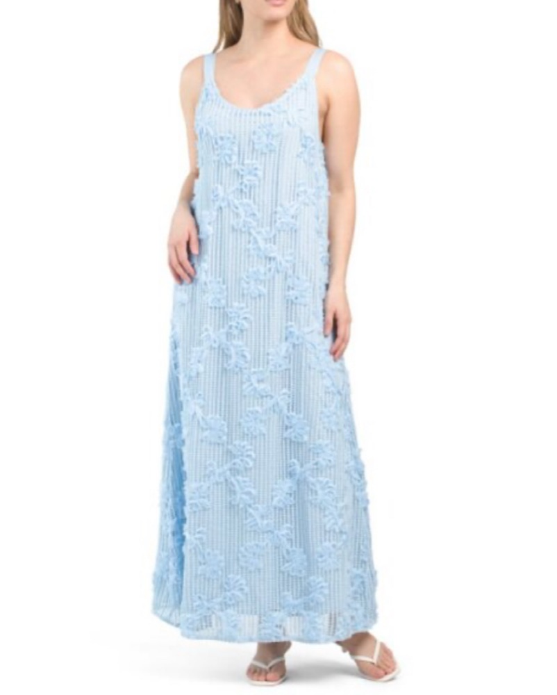 Light blue knit dress with floral details all over. Perfect for a beach vacay!