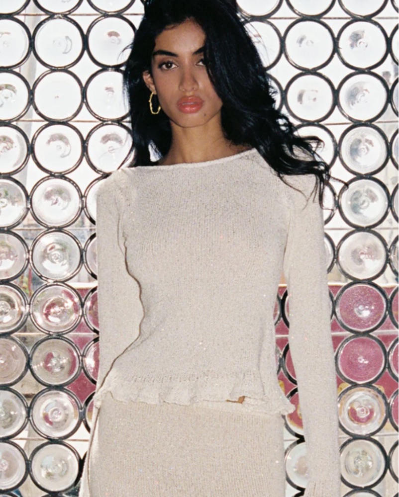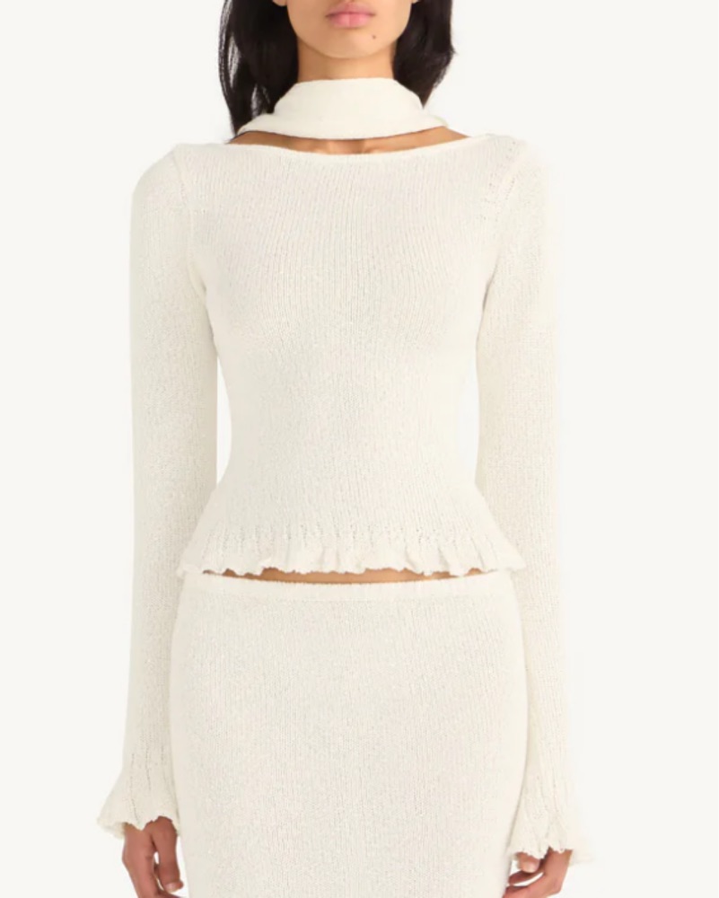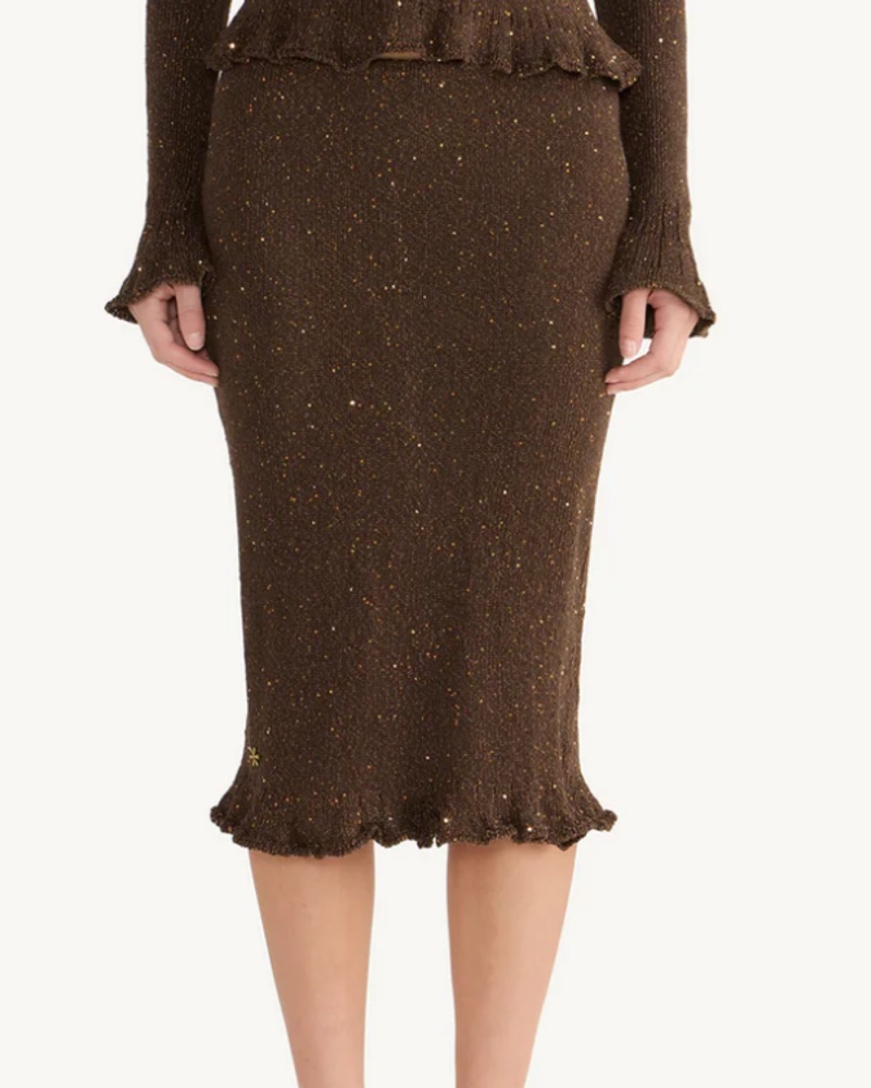 Brand new Asta set size XS top is white/cream and midi skirt is brown