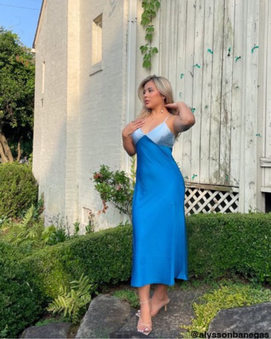 Colorblock Satin Slip Midi Dress