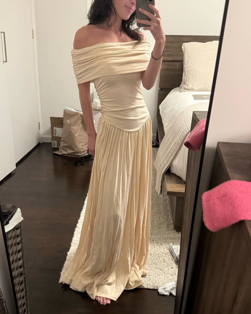 Cutest coziest oatmeal color dress. Off the shoulder. XXS