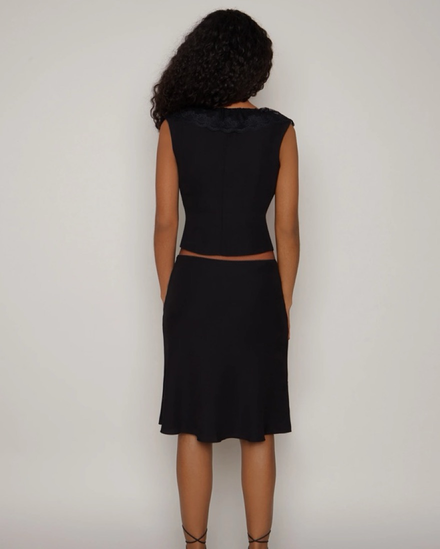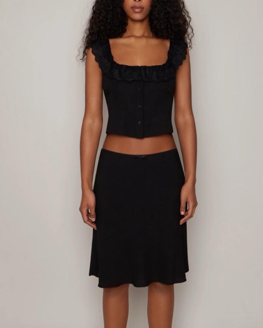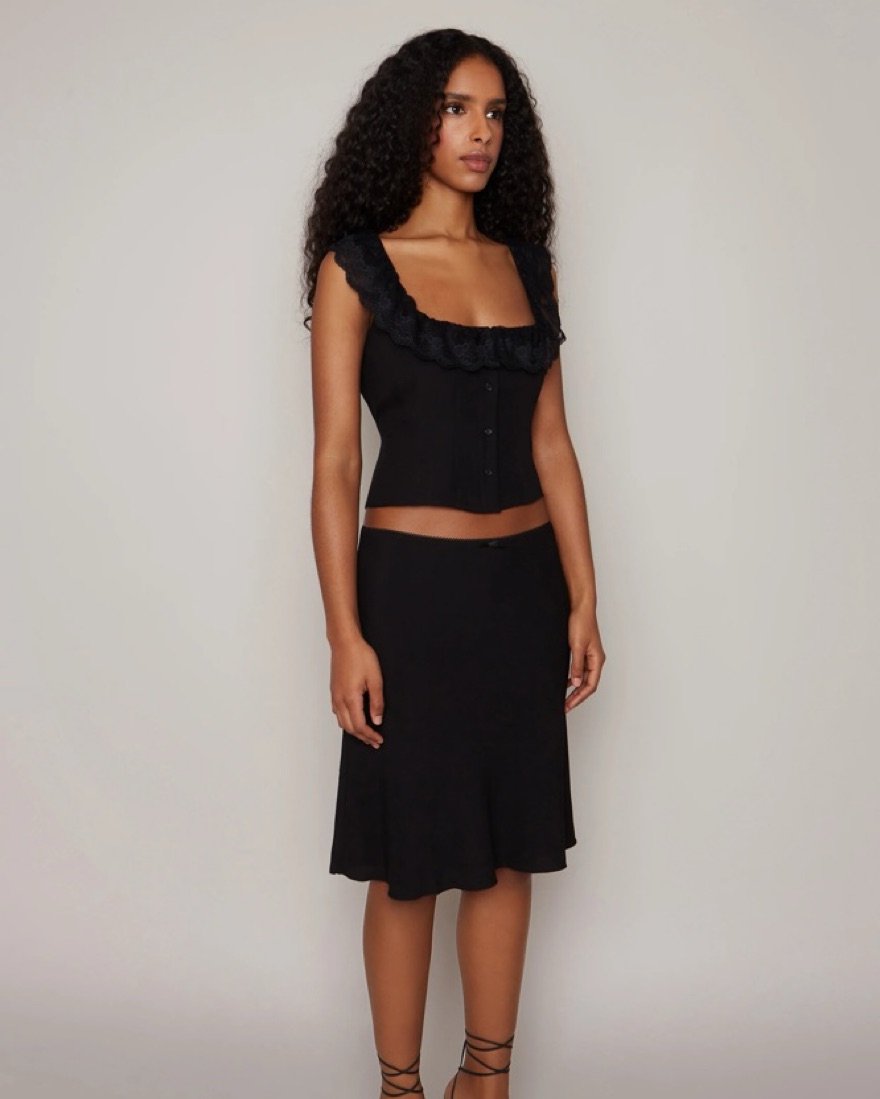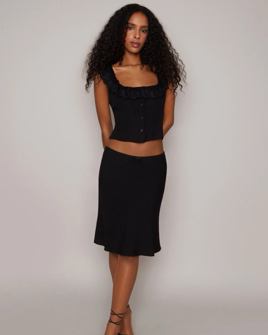 Danielle Guizio Paloma black lace Top And midi Skirt matching Set