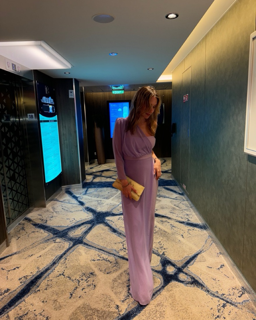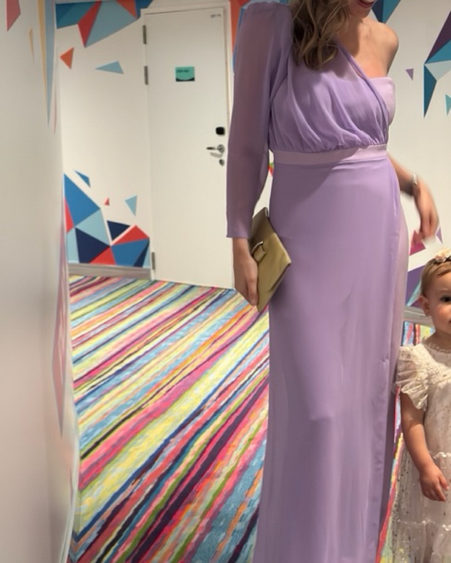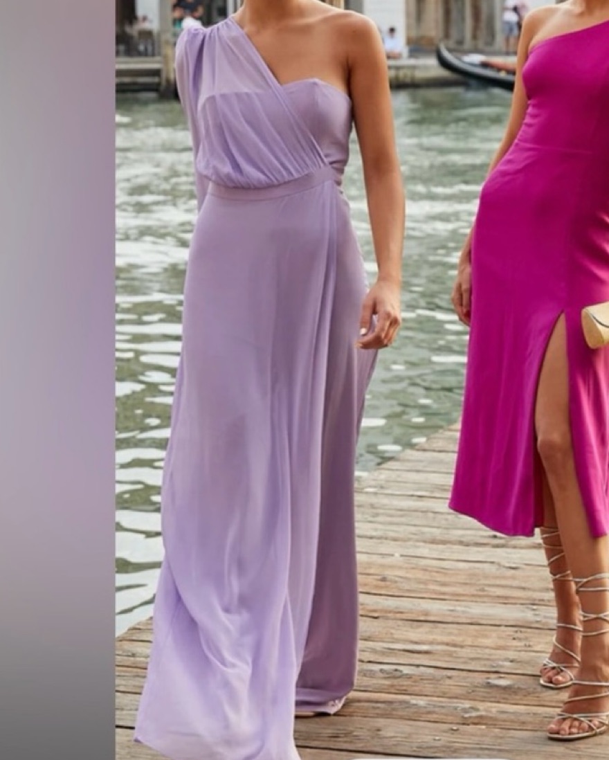 One shoulder jumpsuit with overlay. Spanish style wedding guest dress or formal event