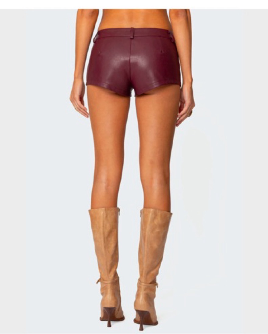 Micro shorts in maroon red Faux leather fabric Polyurethane, Rayon Model wears size S Model height is 5'10